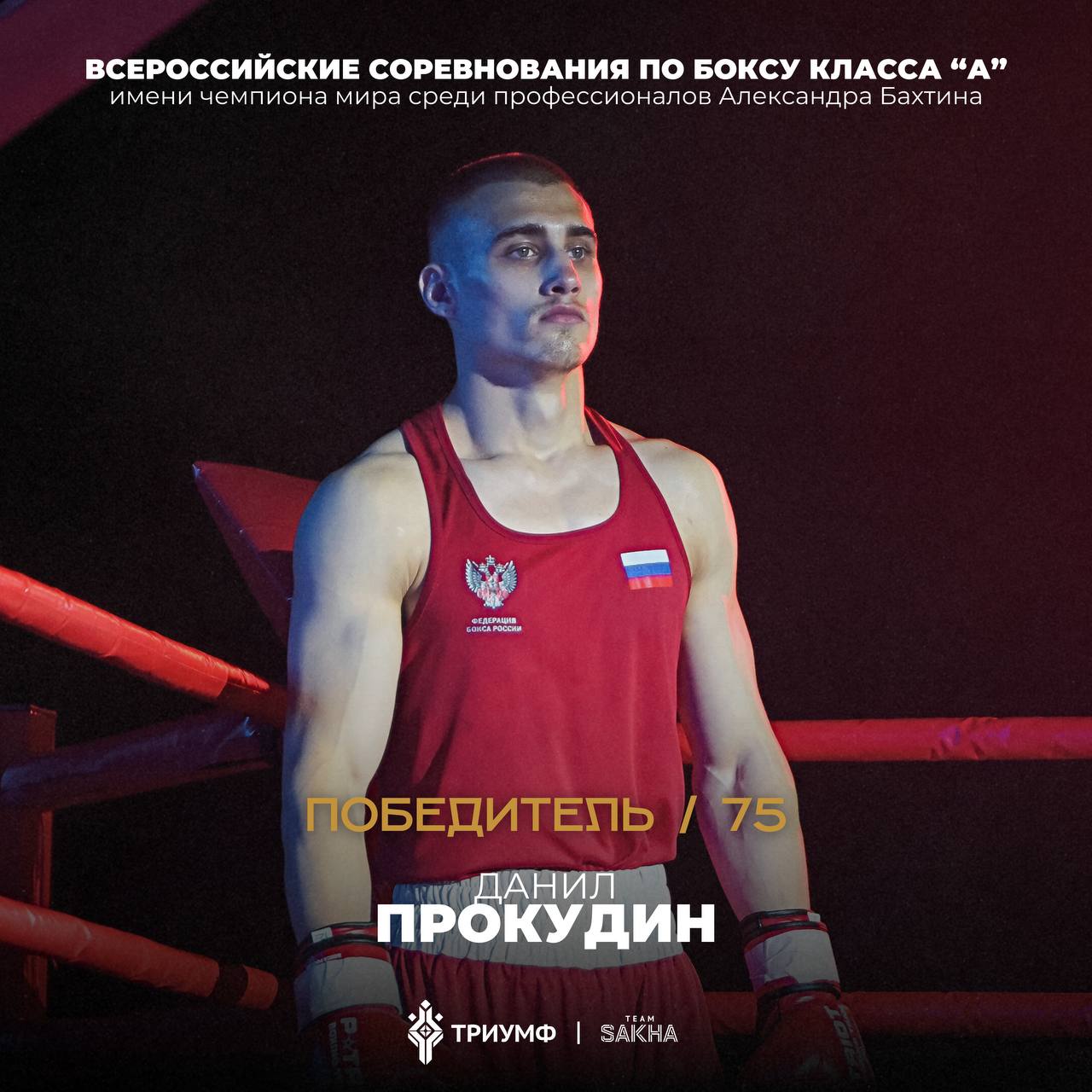 Боксёр сборной Саха Данил Прокудин одержал победу в финальном бое всероссийского соревнования Александра Бахтина.