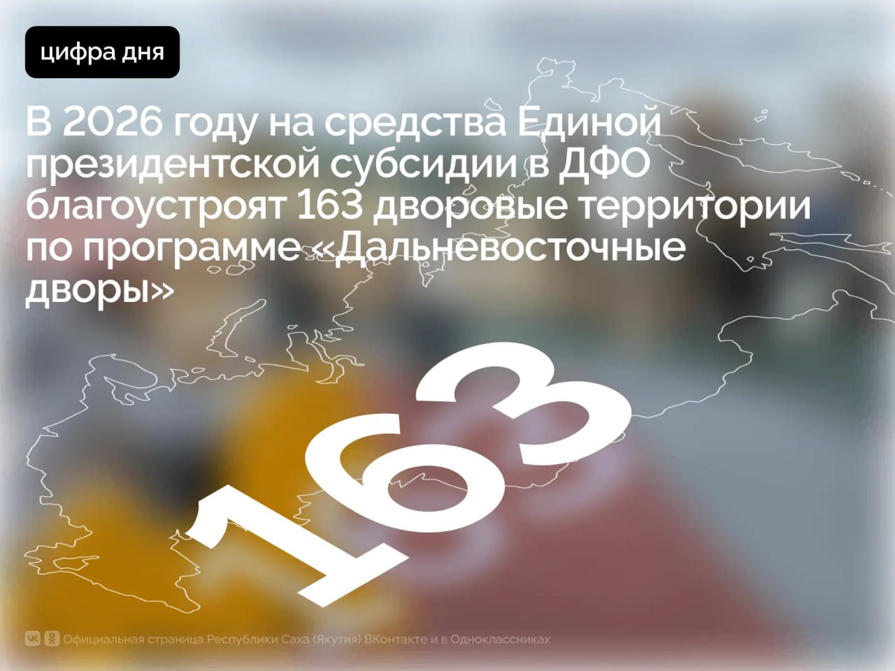 В Дальневосточном федеральном округе в течение 2026 года в рамках программы «Дальневосточные дворы» планируется благоустроить 163 дворовые территории в 73 населённых пунктах.