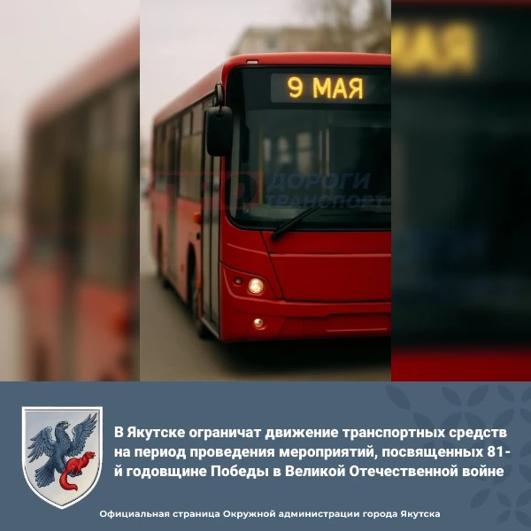 Внимание! В Якутске в дни проведения мероприятий, приуроченных к 81-й годовщине Победы, временно ограничат движение транспорта