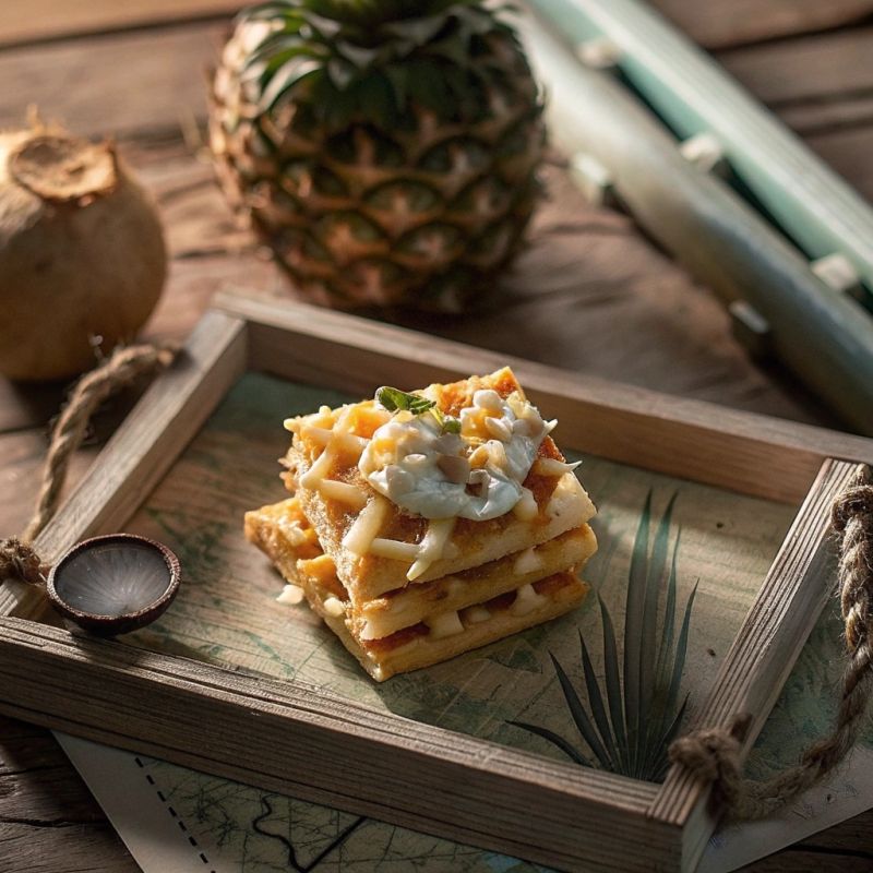 Описание: Погрузитесь в атмосферу середины XVIII века и насладитесь сладкими ананасовыми вафлями, которые станут не только замечательным началом дня, но и ярким напоминанием о первых встречах Кука с солнечным Таити.