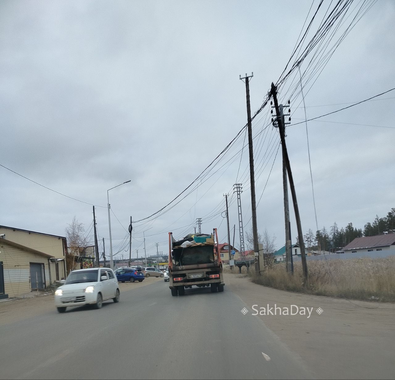 #пишут Сергеляхское шоссе. мусор сыпется по дороге, (туалетная бумага, полистирол итд)
