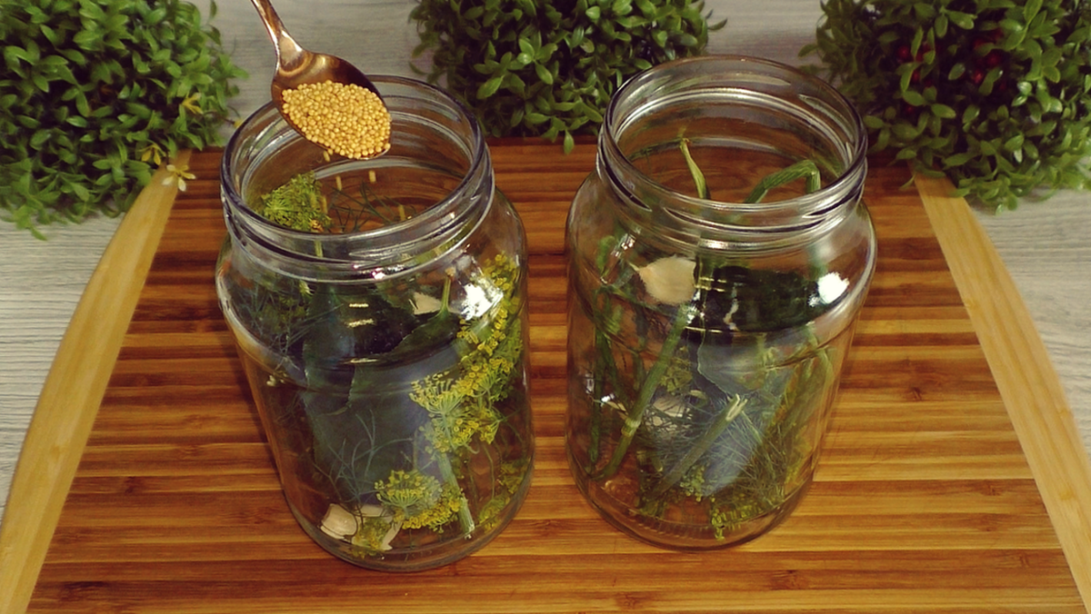 - специи: укроп, листья вишни, чеснок, перец горошком, семена горчицы