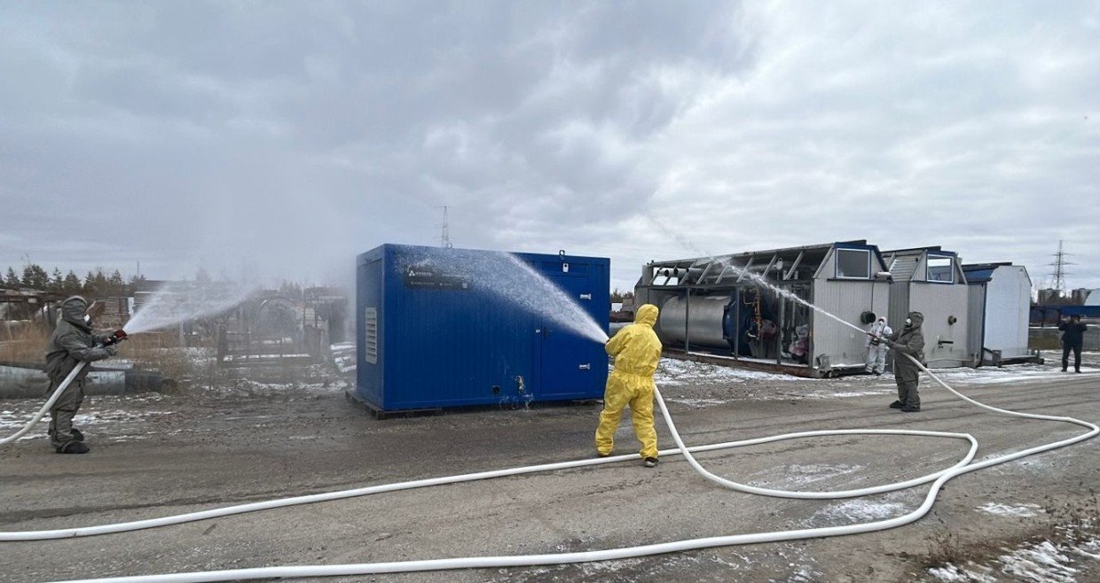На территории филиала «Коммункомплектация» ГУП «ЖКХ РС(Я)» в Якутске 1 октября состоялись показные практические занятия по гражданской обороне для демонстрации комплекса мер по специальной обработке зданий, сооружений и участков местности.