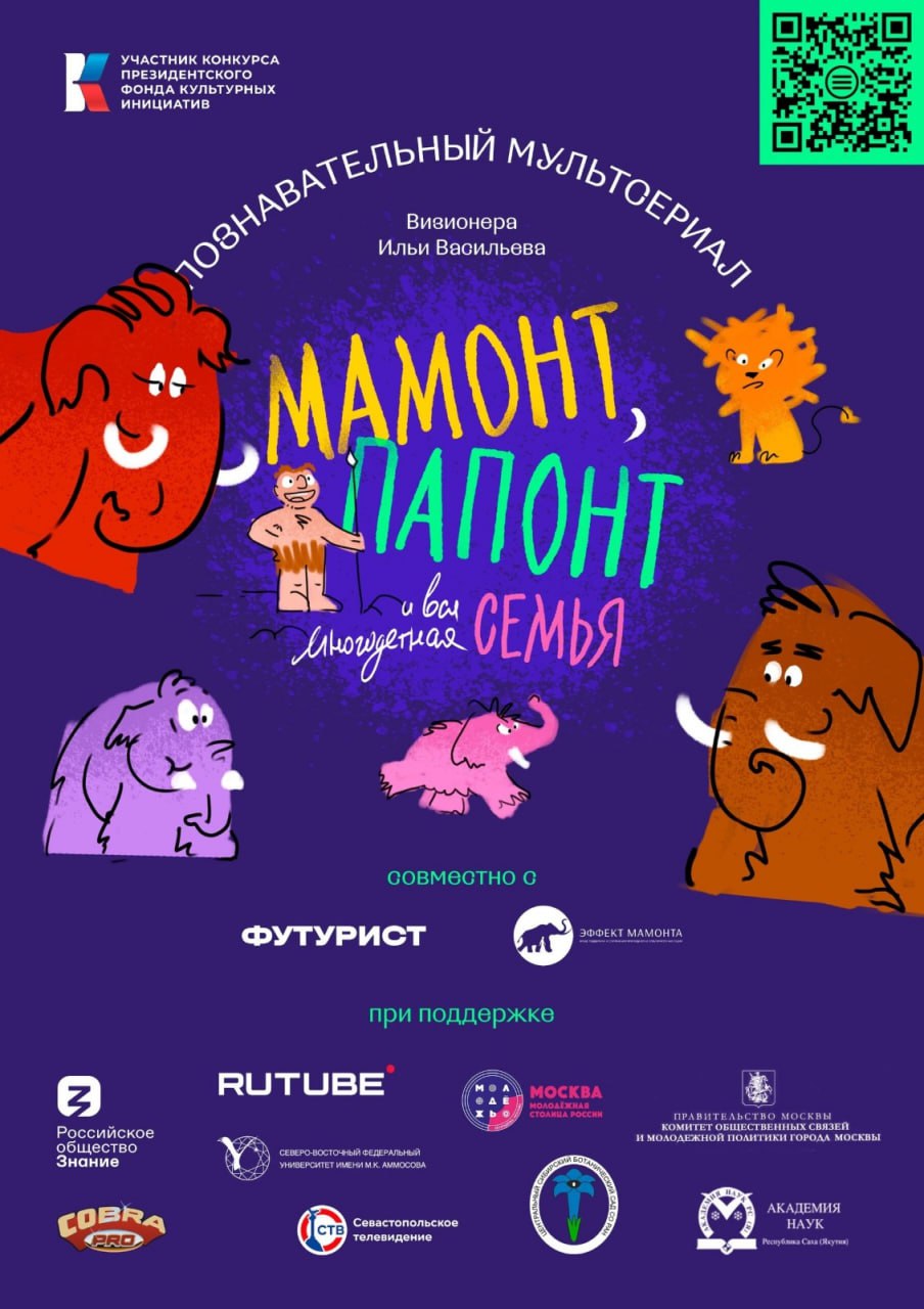 В ближайшее время выйдет первая серия анимационного сериала «Мамонт, Папонт и вся многодетная семья». Это увлекательный и познавательный мультсериал о большой семье мамонтов, обитающих в Арктике.