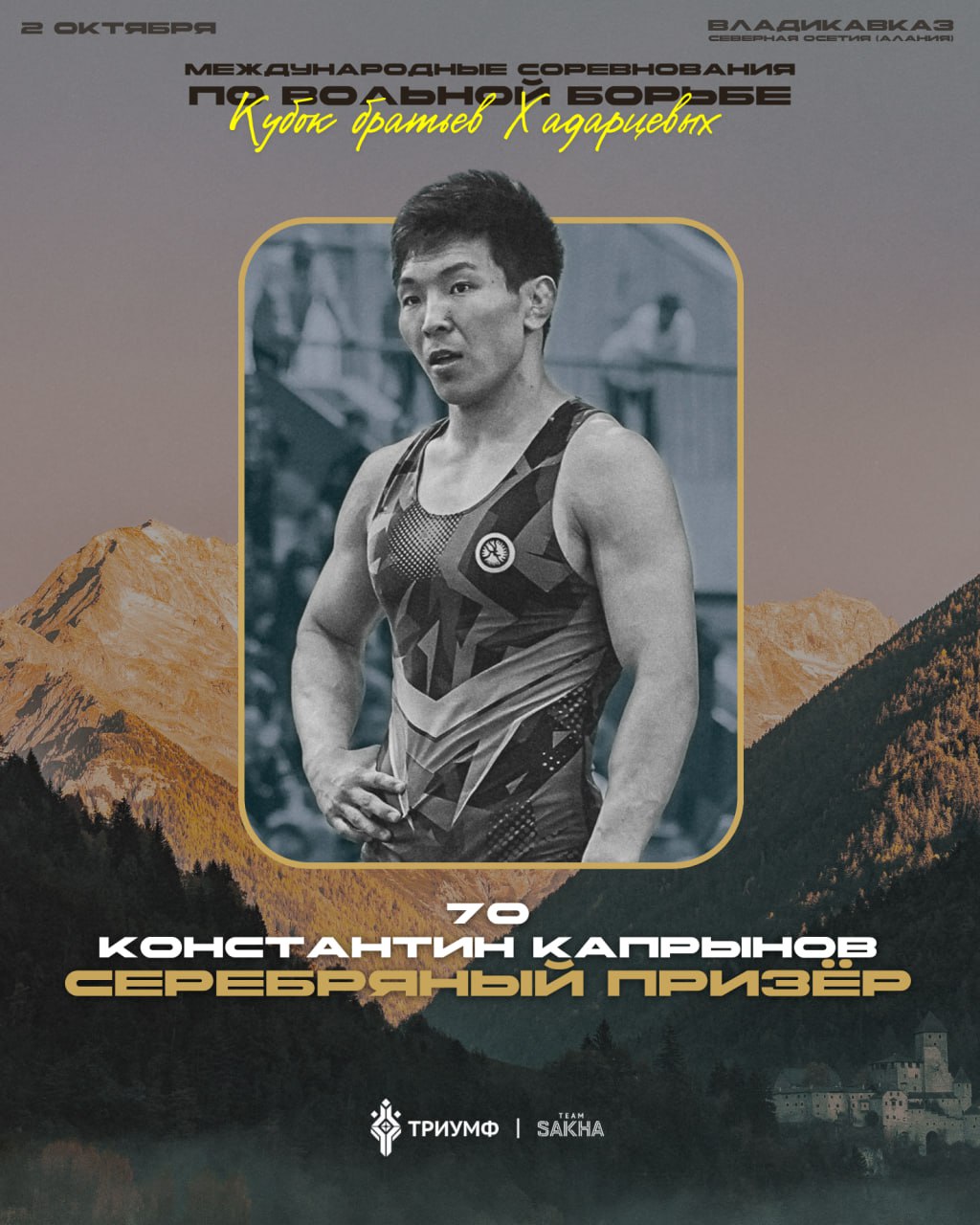 Капитан сборной Саха Константин Капрынов стал обладателем серебряной медали международного соревнования по вольной борьбе на призы братьев Хадарцевых