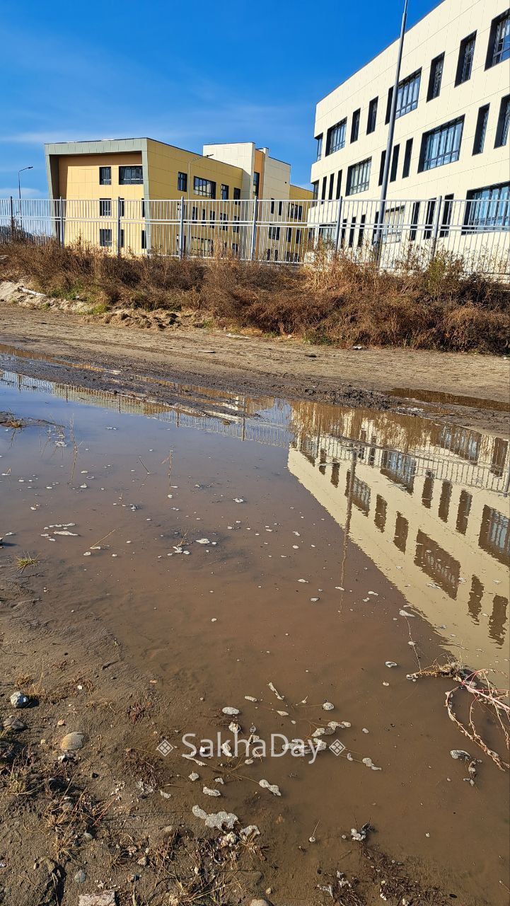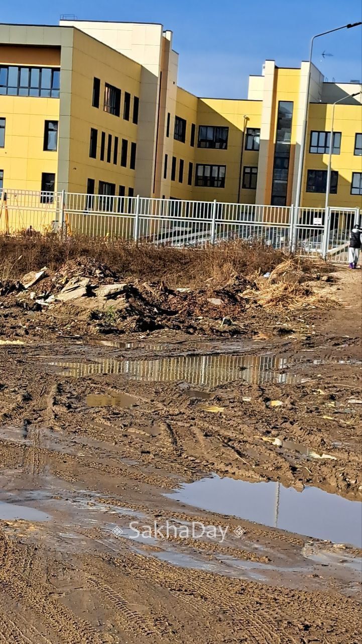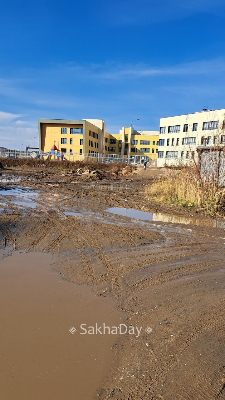 Самая большая новая школа в Якутске, но детям и их родителям приходится добираться по такой вот грязи.