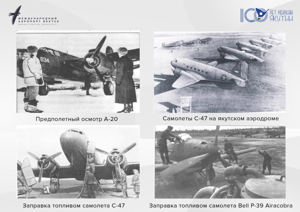 Октябрь 1941 года – для приёма военной авиации Якутской авиагруппе поручили расширить существовавший аэродром. Работы завершили всего за 8 дней — в условиях короткого светового дня, лютых морозов и ограниченных ресурсов.6 октября 1942 года начал действовать воздушный мост «Аляска — Сибирь» (маршрут Фербенкс - Якутск - Красноярск). По этой трассе по ленд-лизу шли поставки самолётов из США: за три года было доставлено около 8 тысяч боевых и транспортных машин, таких как Douglas A-20 Havoc, Bell P-39 Airacobra, С-47, сыгравших существенную роль в обеспечении фронта.