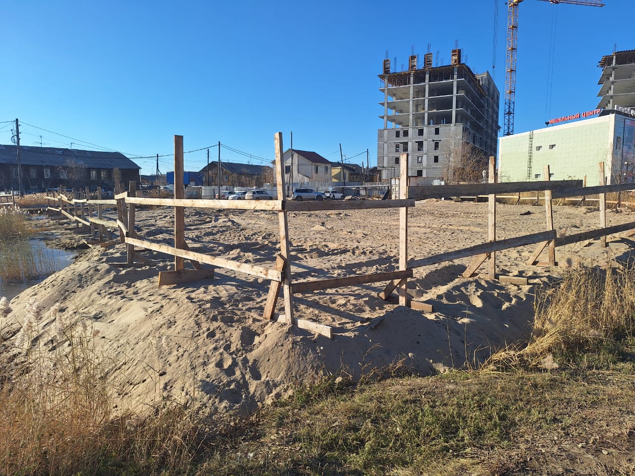 Также начался движ на пустыре, где были снесены дома №15 и 17 на ул. Жорницкого. Территорию огородили деревянными конструкциями. Здесь намечается продолжение строительства ЖК «Пионерский», которым занимается МУП «АРТ» (Агентство развития территорий Окружной администрации). @sakhaday
