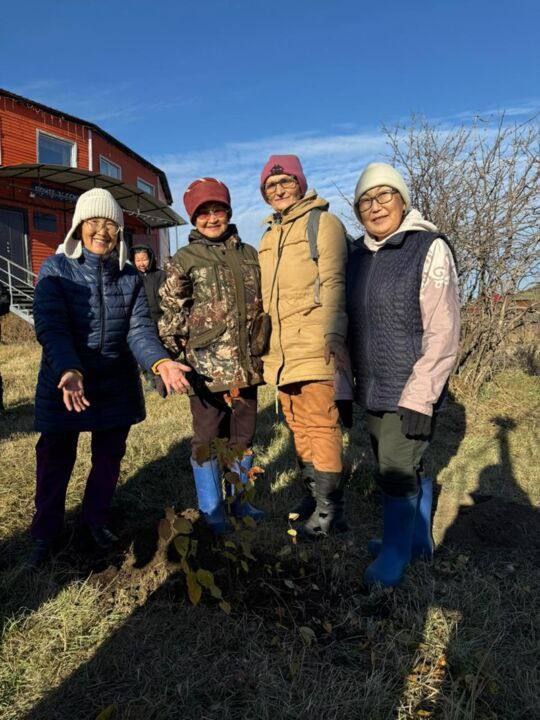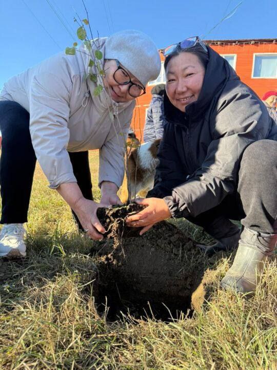 Всего амгинские женщины посадили 15 яблонь. Пожелаем им через 2 года собрать первый урожай! Перевод @yakutsk_newss