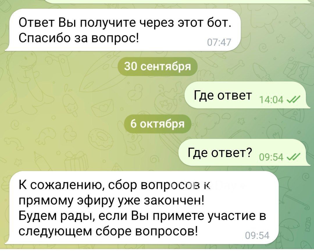 #спрашивают Можно узнать когда будет ответ на вопрос от прямого эфира Главы РС(Я)? В боте вопрос принять приняли...и где? Что то долго ждать приходиться