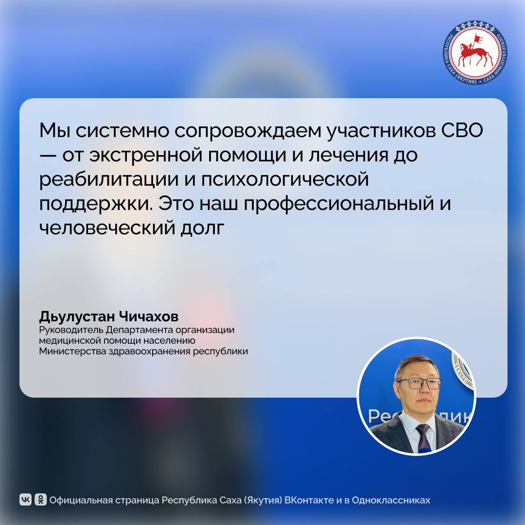 Система здравоохранения Якутии продолжает комплексную работу по оказанию медицинской, реабилитационной и психологической помощи участникам специальной военной операции и членам их семей.