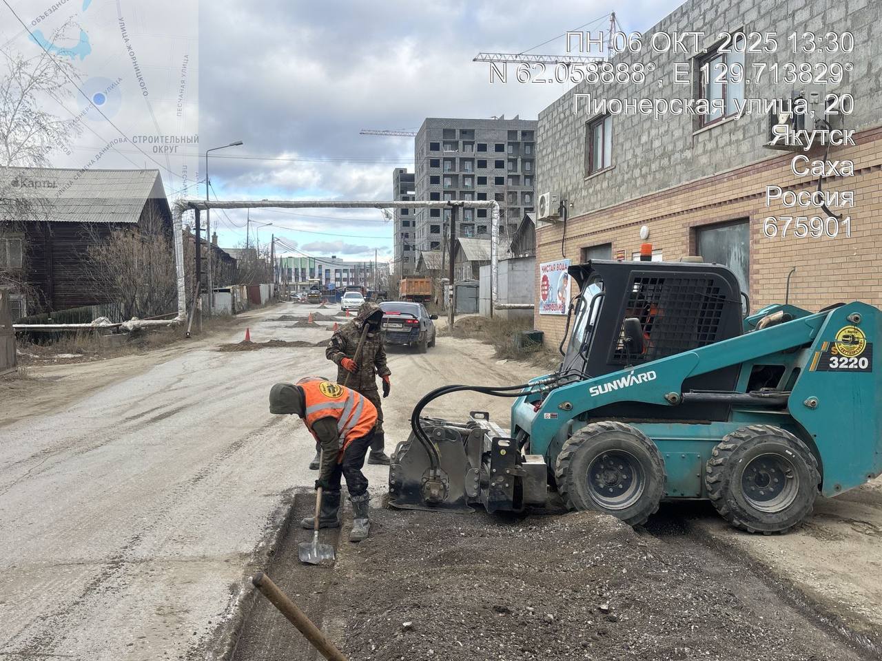 Ведутся работы по ямочному ремонту на ул. Пионерская.