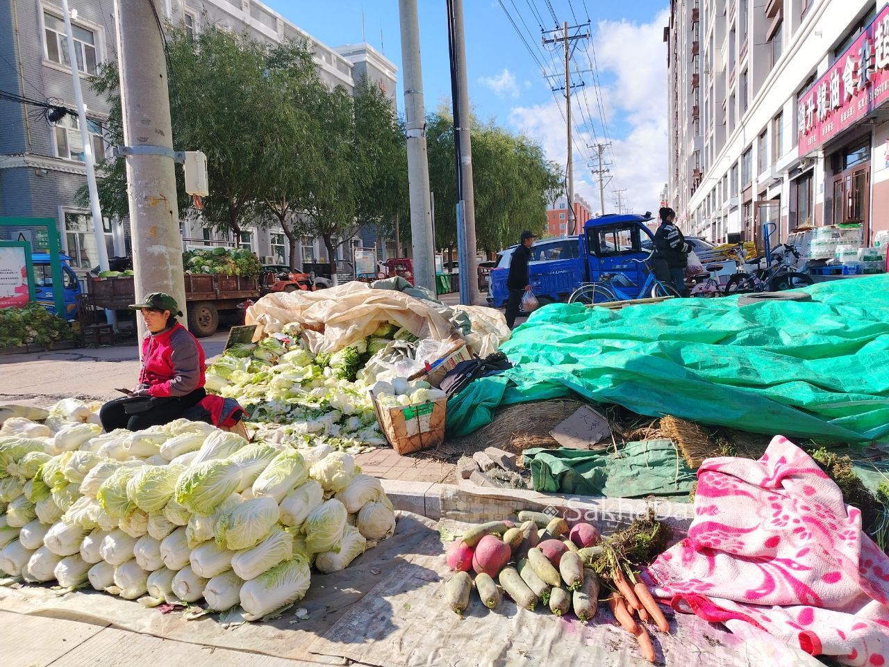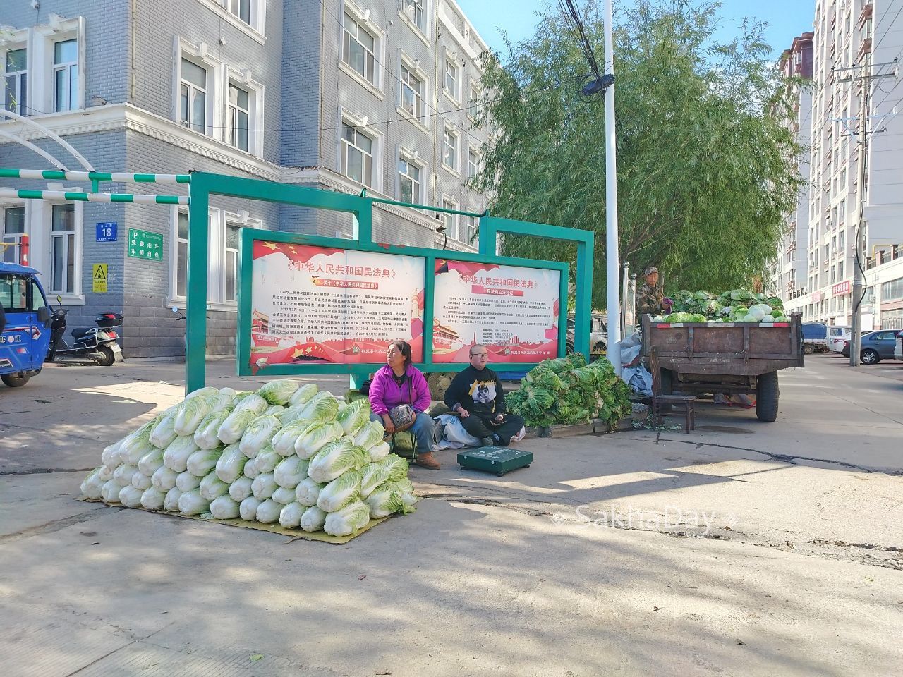 Китайские крестьяне, торгующие на улицах китайских деревень. За место не платят, налогов нет, главное не сидят на шее государства. Им государство даже платит субсидии за то что приносят пользу другим, выращивая на своих участках кукурузу, сою и другие овощи.