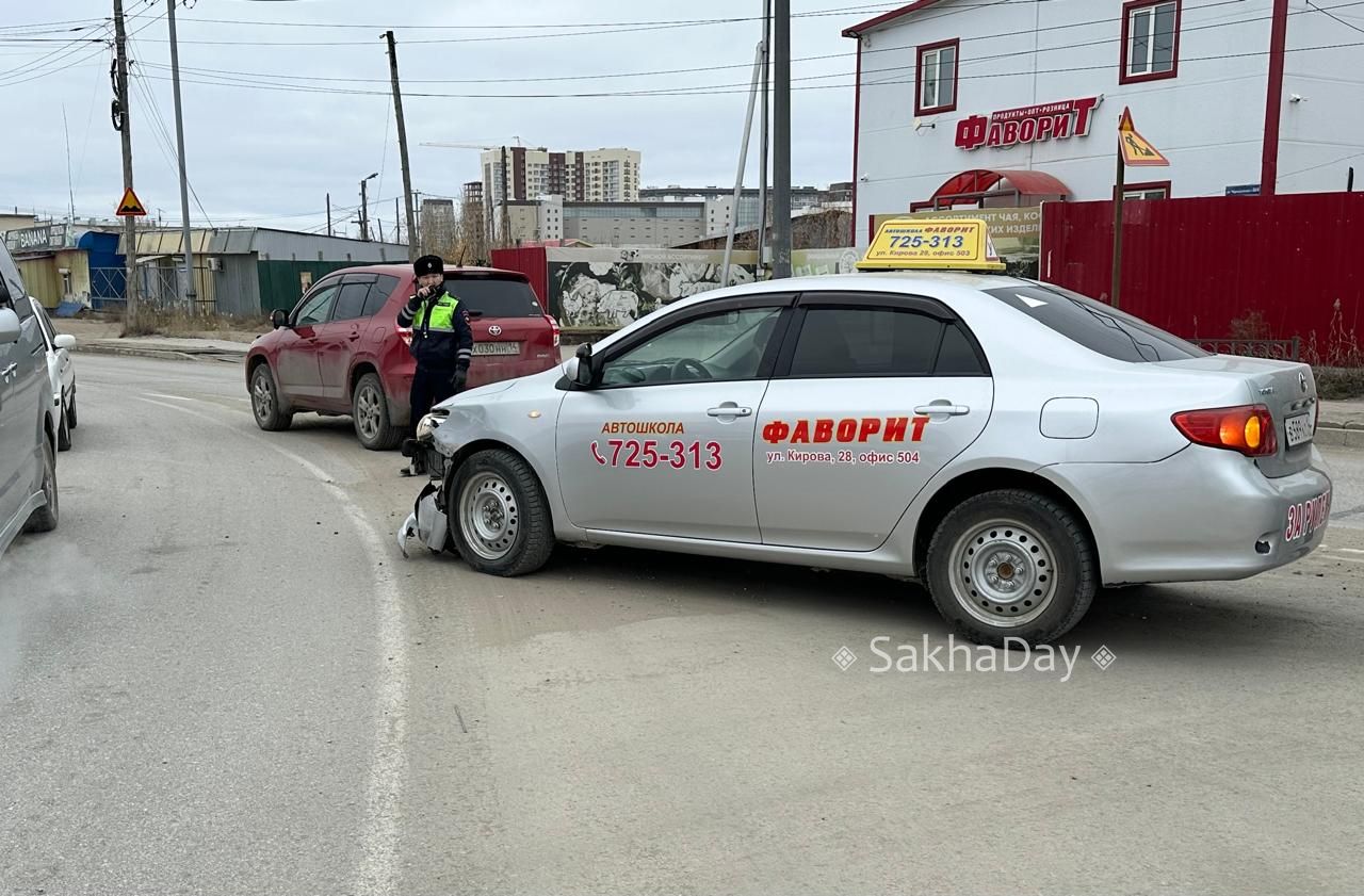 ДТП на круговой развязке улицы Чернышевского и Покровского тракта. Учебный автомобиль столкнулся с РАВ-4. @sakhaday