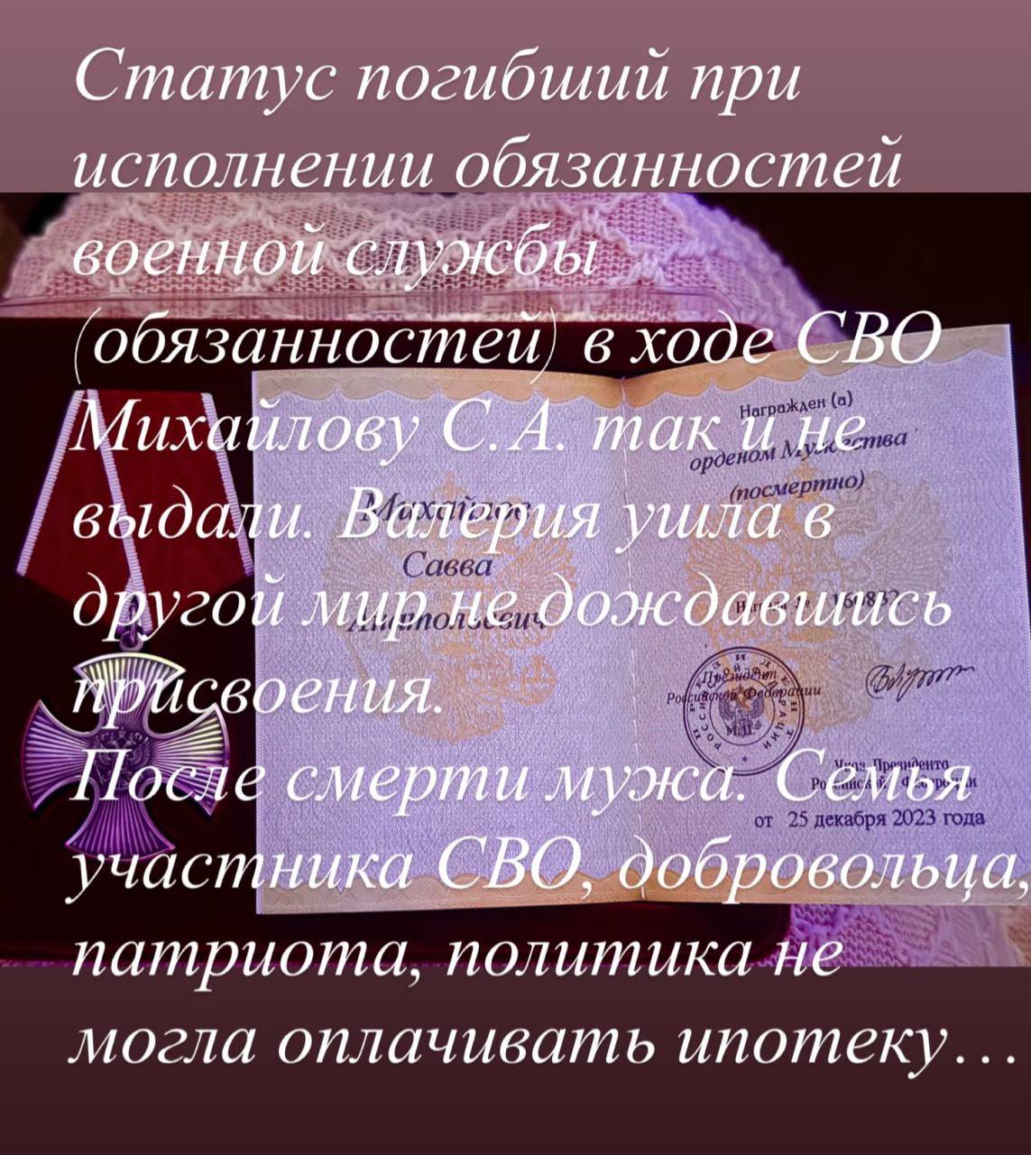 Статус погибшего при исполнении обязанностей в ходе СВО Савве Михайлову так и не выдали.