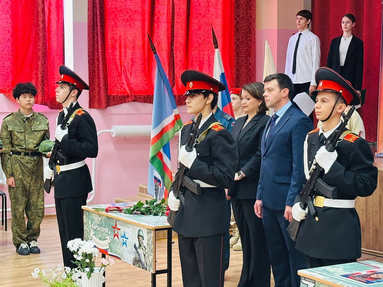 Торжественная церемония открытия «Парты Героя» в память о двух выпускниках – Константине Власове и Айнуре Загидуллине, которые погибли в ходе специальной военной операции, состоялась в школе №5 поселка Айхал Мирнинского района.