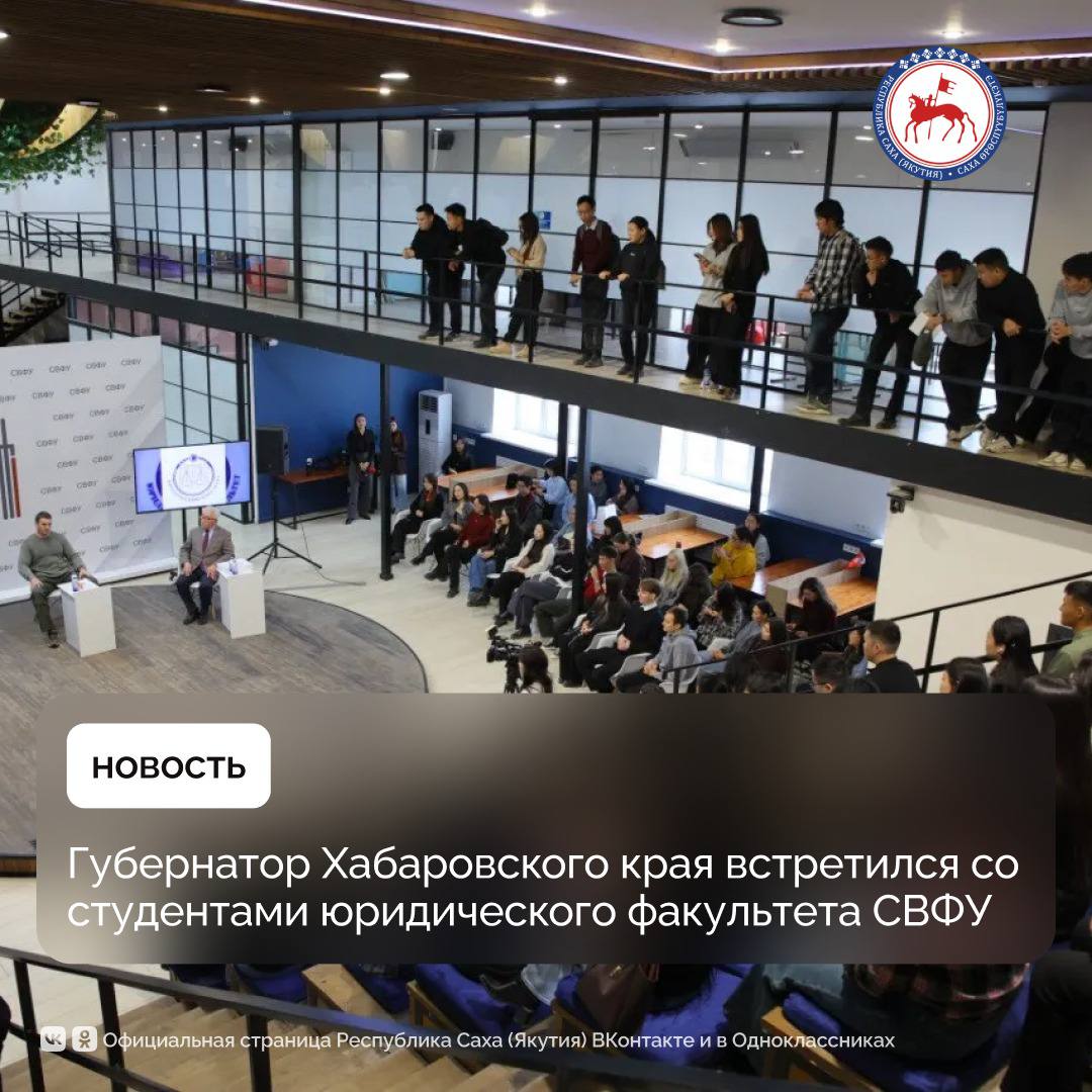 Сегодня, 8 октября, в Центре студенческих инициатив Северо-Восточного федерального университета имени М.К. Аммосова состоялась встреча губернатора Хабаровского края Дмитрия Демешина со студентами юридического факультета.