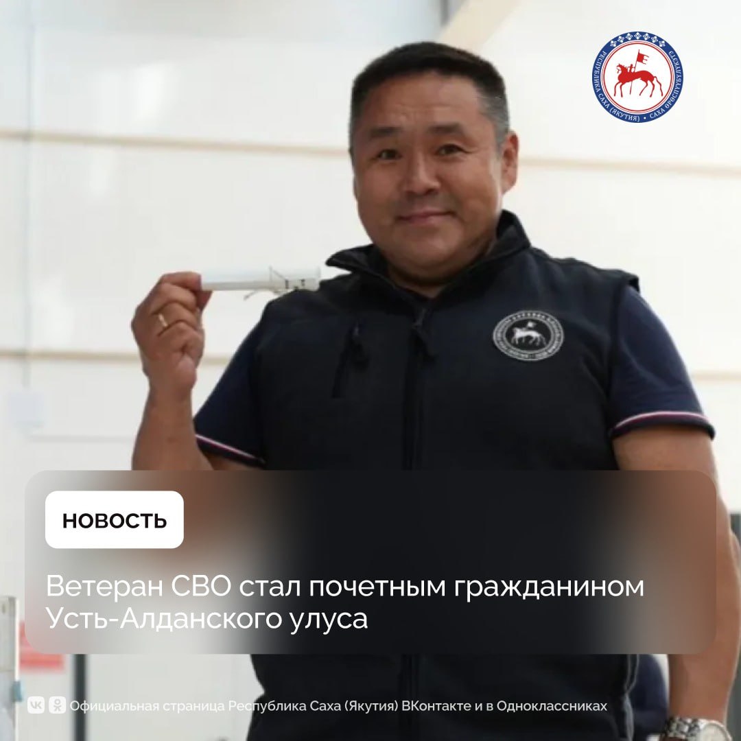 Ветеран боевых действий, участник специальной военной операции и кадровой программы «Якутия – Земля героев» Леонид Александров удостоен звания почетного гражданина Усть-Алданского улуса. Решение о присвоении этого почетного статуса принято в знак признания его заслуг перед Родиной и вклад в развитие родного района.
