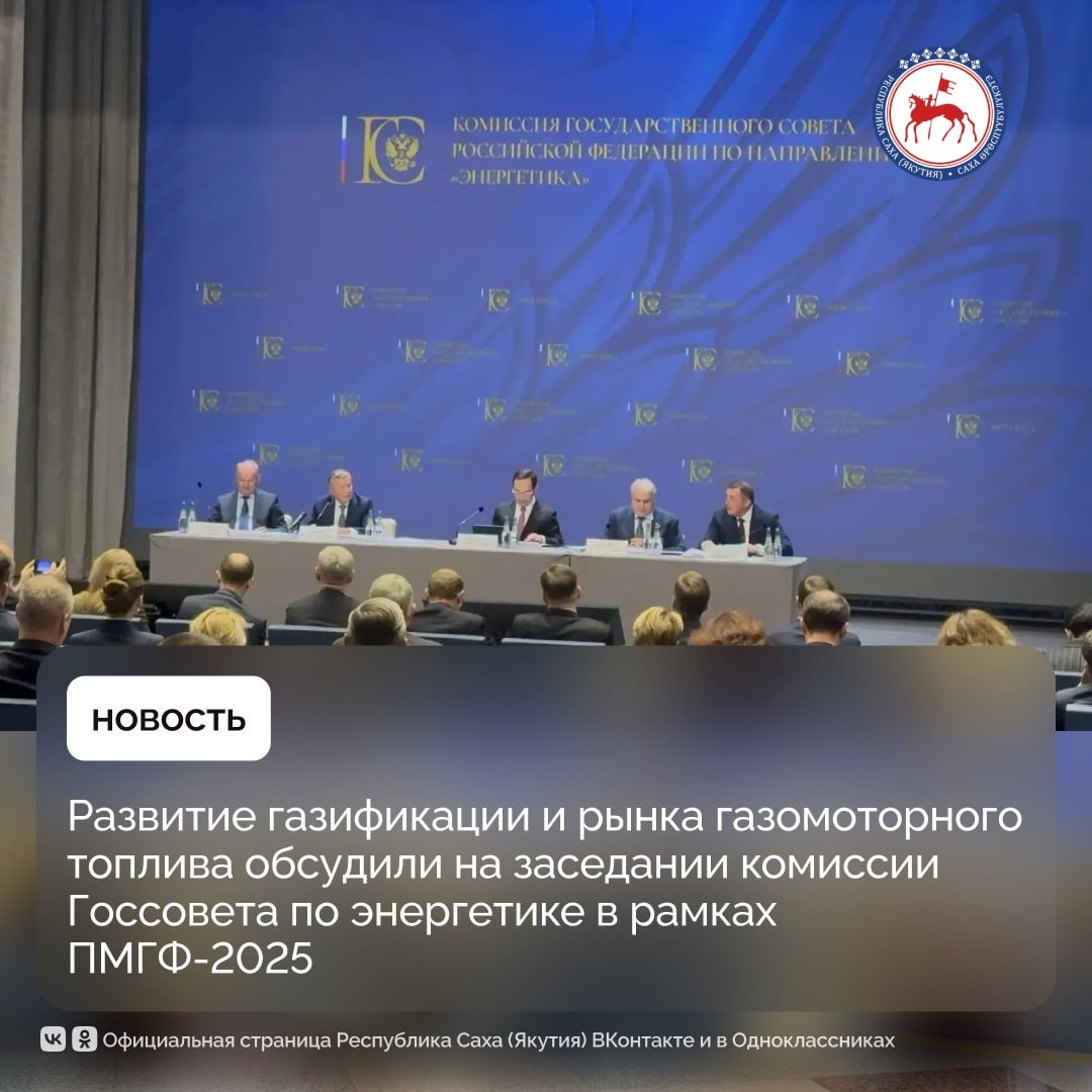 8 октября 2025 года в Санкт-Петербурге в рамках XIV Петербургского международного газового форума состоялось заседание комиссии Государственного Совета Российской Федерации по направлению «Энергетика». Мероприятие провел Айсен Николаев, Глава Республики Саха (Якутия), председатель комиссии.