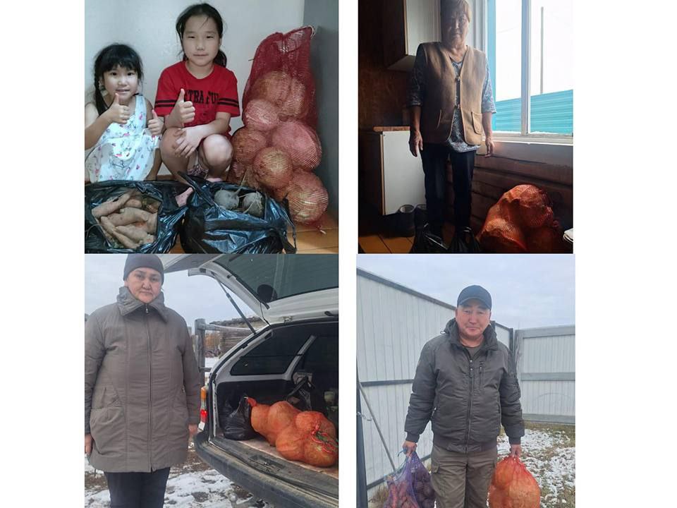 В этом году администрация улуса закупила у местных сельхозпредприятий картофель, морковь и свеклу. Волонтеры, включая сотрудников соцзащиты и психологической службы, доставили и распределили овощи по населенным пунктам и семьям.