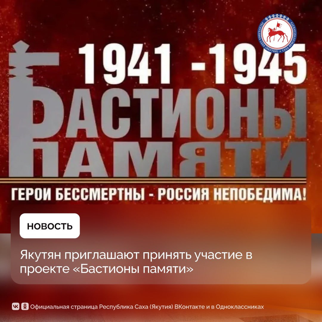 Якутян приглашают принять участие в народном проекте «Бастионы памяти», направленном на сохранение и увековечение подвига воинов-якутян, погибших в годы Великой Отечественной войны.