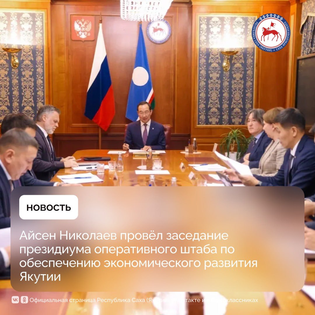 Глава Якутии Айсен Николаев провёл очередное заседание президиума оперативного штаба по обеспечению экономического развития Республики Саха (Якутия).