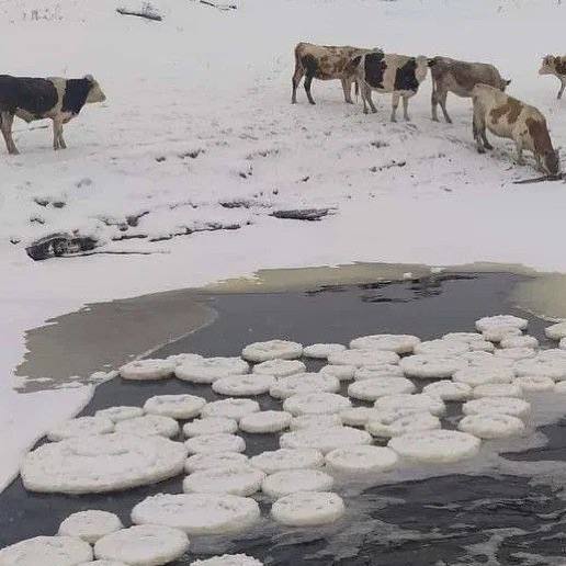 В Якутии заметили по-настоящему редкое и впечатляющее природное явление — на реке лёд образовал идеально круглые формы, похожие на огромные оладьи. Природа снова удивляет своей фантазией и мастерством!