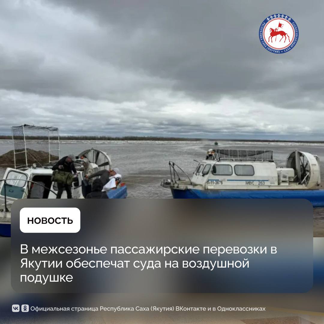 В межсезонье транспортное сообщение между берегами рек Якутии будет обеспечено судами на воздушной подушке. Этот вид транспорта позволяет поддерживать движение при образовании шуги и тонкого льда, когда паромы прекращают работу, а ледовые переправы ещё не открыты. Решение направлено на поддержание транспортного сообщения через крупные реки республики в переходный период.