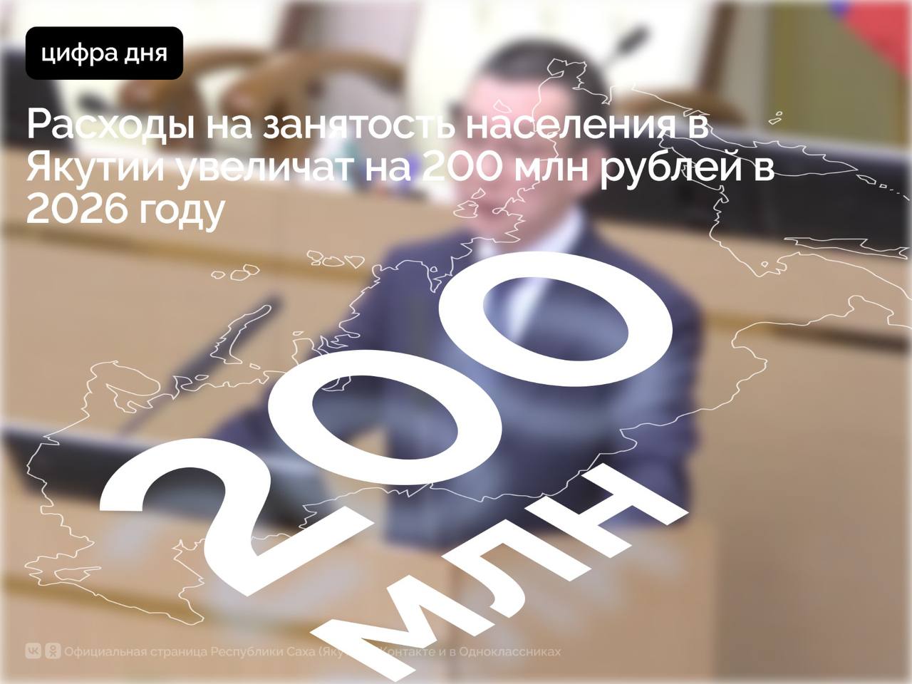 Согласно рассматриваемому законопроекту, на реализацию государственной программы «Содействие занятости населения Республики Саха (Якутия)» в проекте республиканского закона «О государственном бюджете Республики Саха (Якутия) на 2026 год и на плановый период 2027 и 2028 годов» предусмотрено увеличение ассигнований на 200 млн рублей.