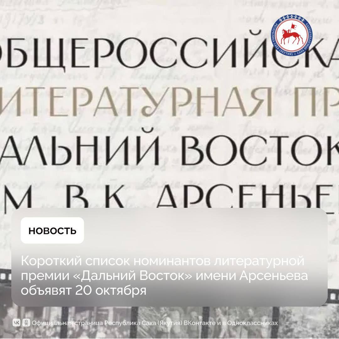 20 октября в ходе пресс-конференции в Международном информационном агентстве (МИА) «Россия сегодня» объявят короткий список номинантов Общероссийской литературной премии «Дальний Восток» им. В.К. Арсеньева.