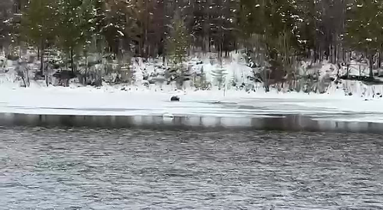 В Мирном на речке Ирелях жители заметили одинокого лебедя, который вероятно отстал от своей стаи и теперь вынужден оставаться в замерзающем водоеме.