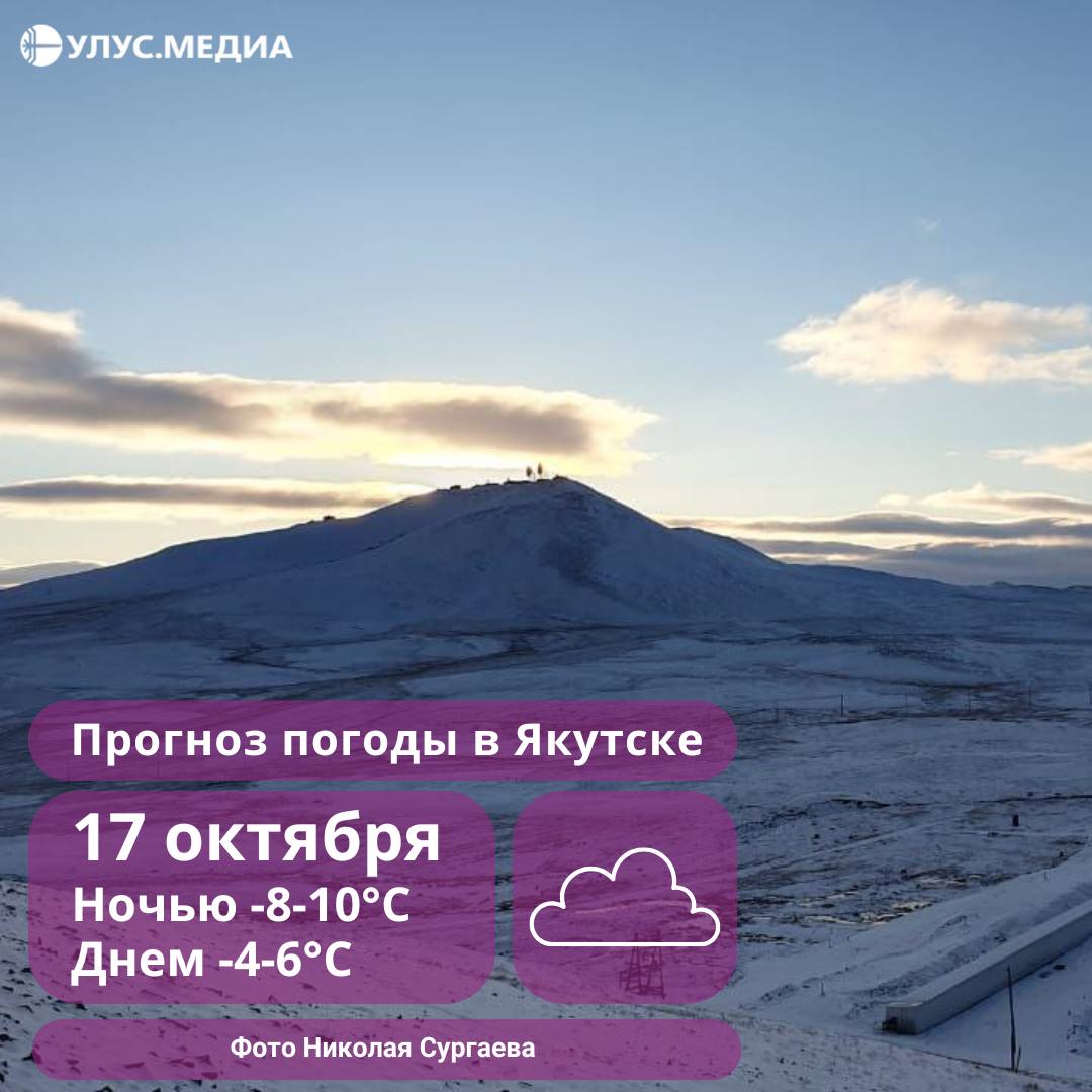 В Якутске ночью прогнозируется -8-10°, днём -4-6°, возможен слабый снег, ветер западный 3–8 м/с.