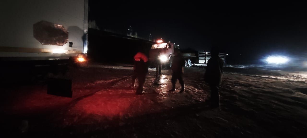 Спасатели Ленского поисково-спасательного отряда оказали помощь фермеру, чей КАМАЗ с 27 головами крупного рогатого скота провалился при переезде через реку Мухтуйка. Транспорт следовал с летника в село Батамай.