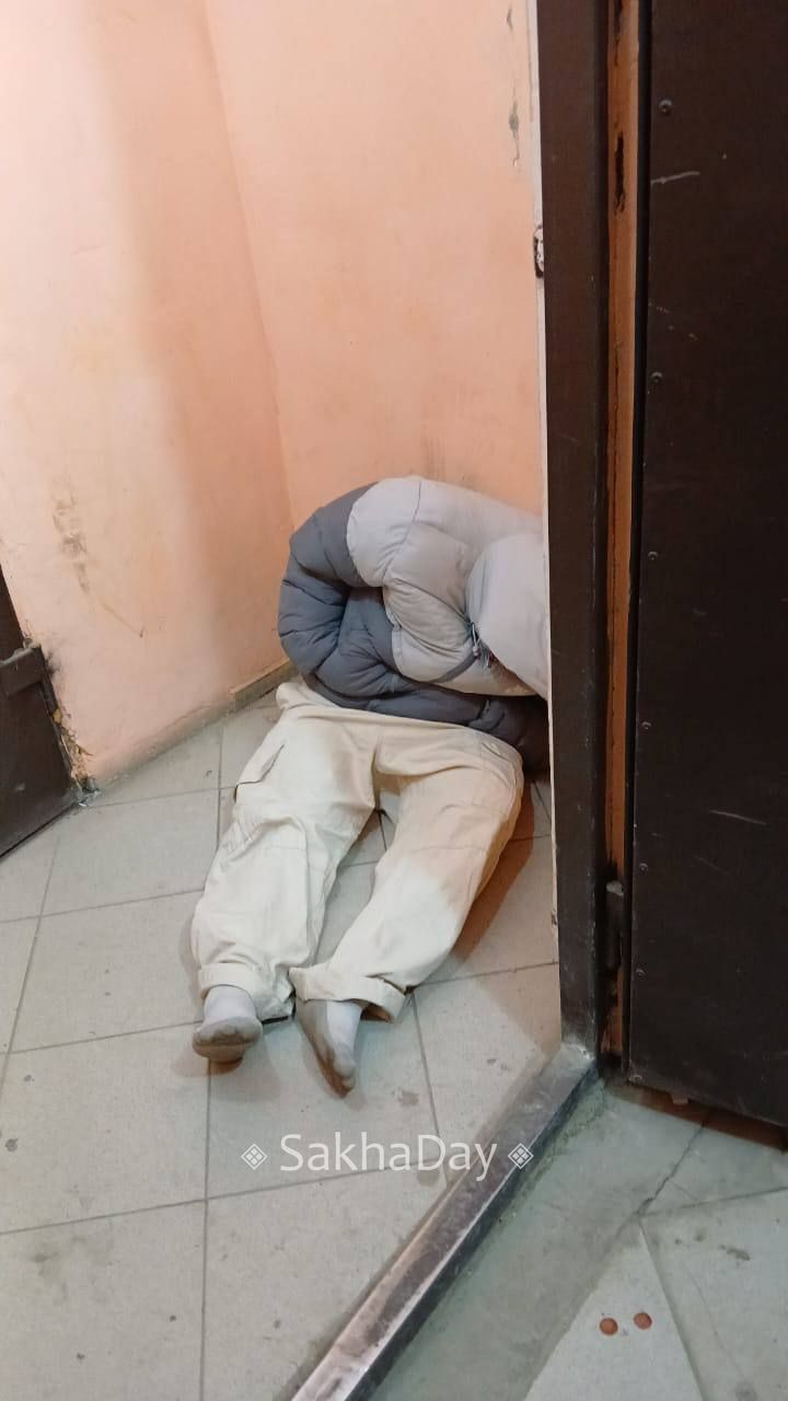 #пишут С утреца спал в подъезде, очень тепло одетый, но без обуви.