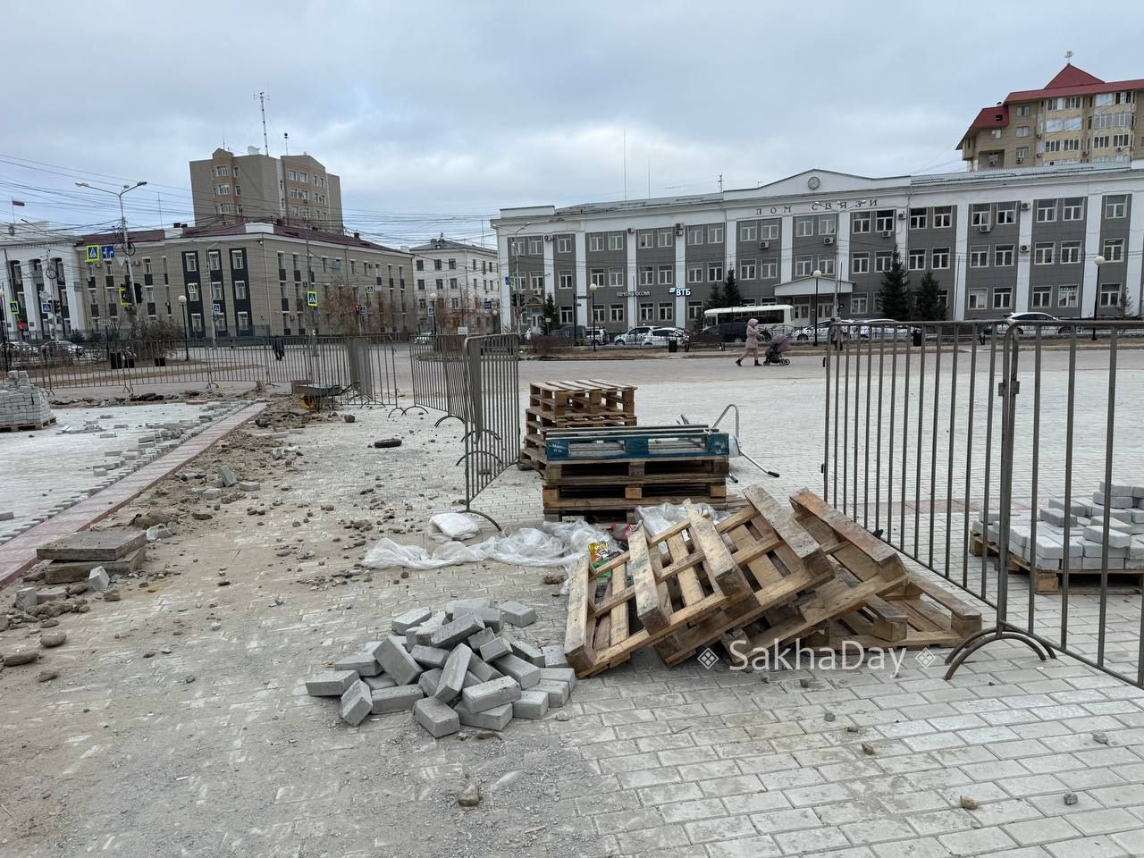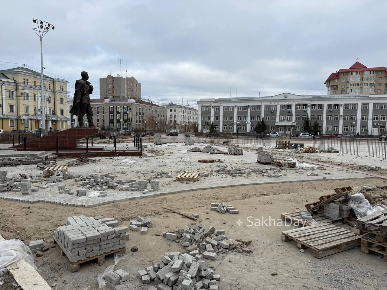 Ранее Айсен Куличенко сообщал, что произошла задержка поставки материалов, но работы по укладке плитки завершатся 17 октября, а в выходные будут проведены работы по расчистке, вывозу мусора и облицовке плитки. @sakhaday #дляsakhaday