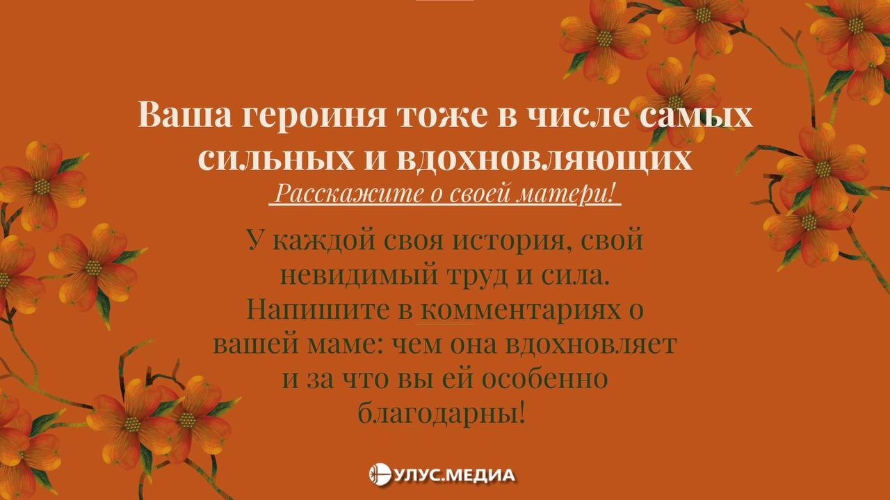Ко Дню матери в республике мы подготовили особую серию – Топ мам Якутии