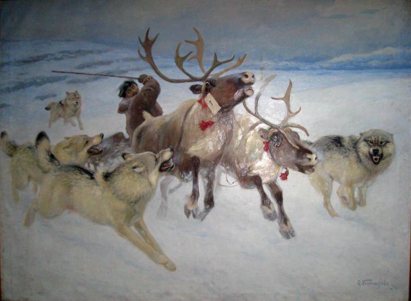 Оленеводы знают, что при потере оленей они теряют и в зарплате. С сентября месяца в данном оленстаде волки задрали несколько оленей. Они видимо наблюдали и изучали оленье стадо. Дело в том, что это были разные волчьи стаи. Наши ученые, да и сами оленеводы считают, что волки умные животные и отличаются от других животных тем, что каждый член волчьей стаи во время охоты выполняет свою роль. Именно в этот момент становится очевидным то сотрудничество между волками, которое существует в стае. Волчья стая может преследовать стадо северных оленей в течение нескольких дней. За это время волки оценивают преследуемое стадо, ищут животное, проявляющее хоть какие-то признаки слабости. При этом волки учитывают другие условия, влияющие на охоту: погоду и особенности местности, которые могут повлиять на результат охоты. В итоге их добычей стало более 900 домашних оленей. Хищники не просто напали — они увели стадо в ледяную пустыню, оставив оленеводов на грани отчаяния.