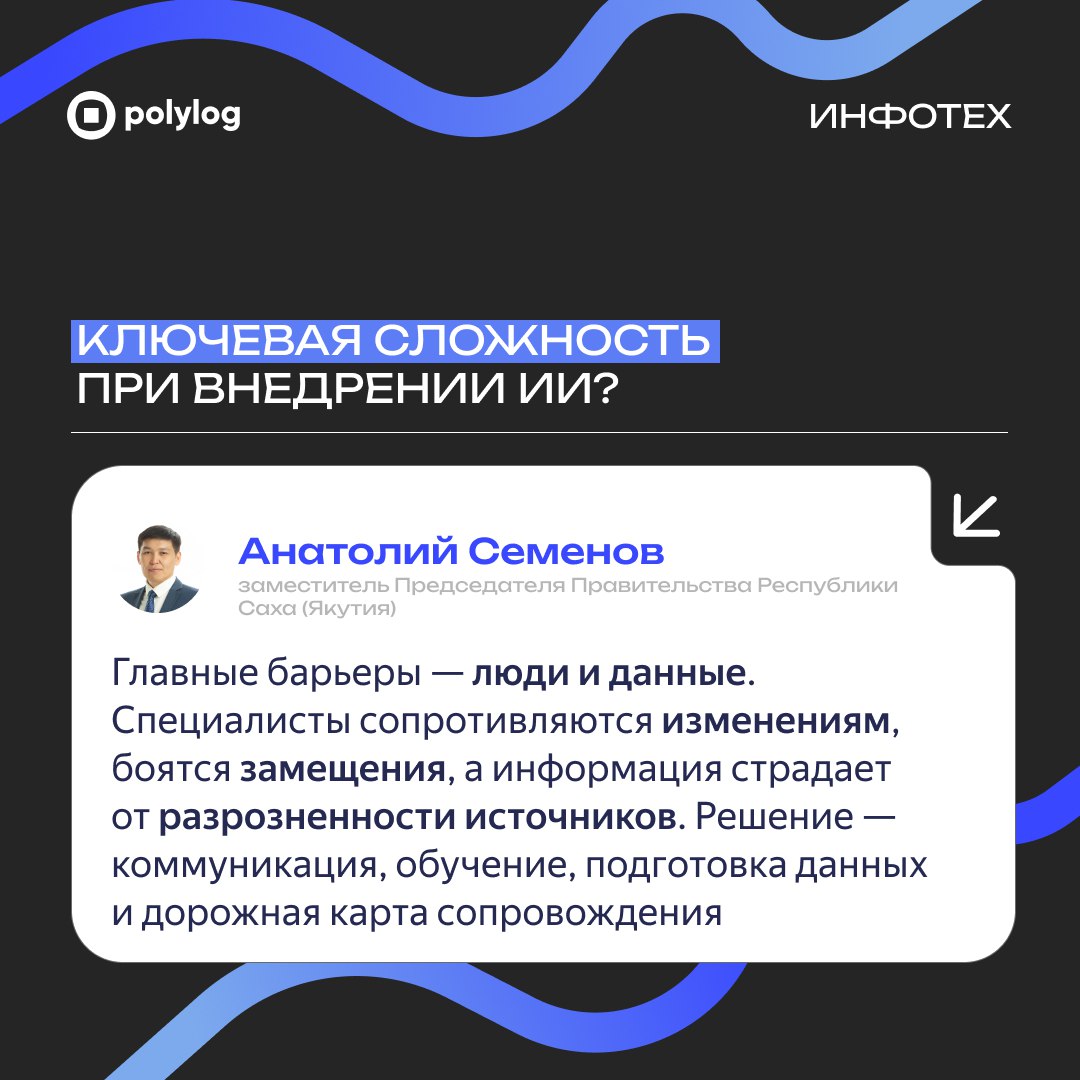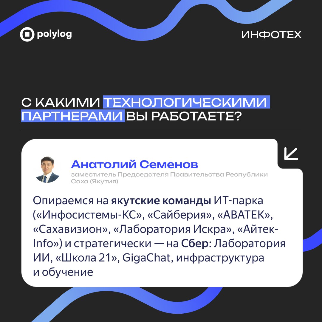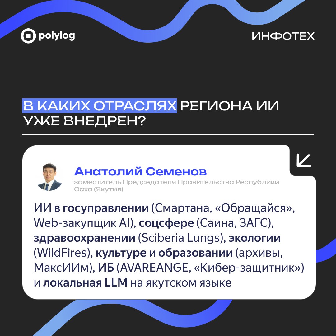 В преддверии форума «ИНФОТЕХ-2025» заместитель Председателя Правительства Республики Саха (Якутия) Анатолий Семенов ответил на вопросы про внедрение ИИ в регионе. Самое интересное — в карточках