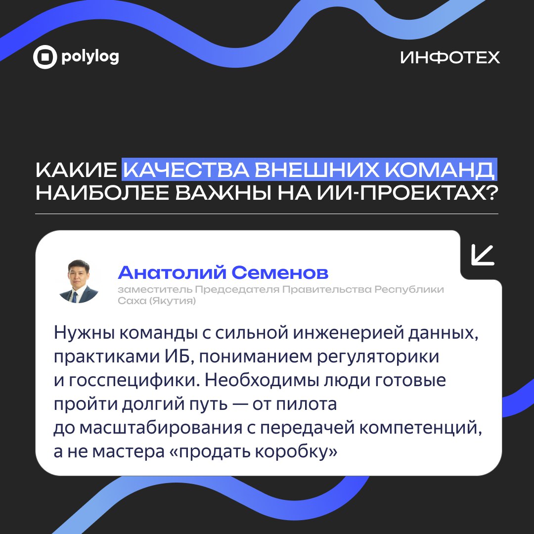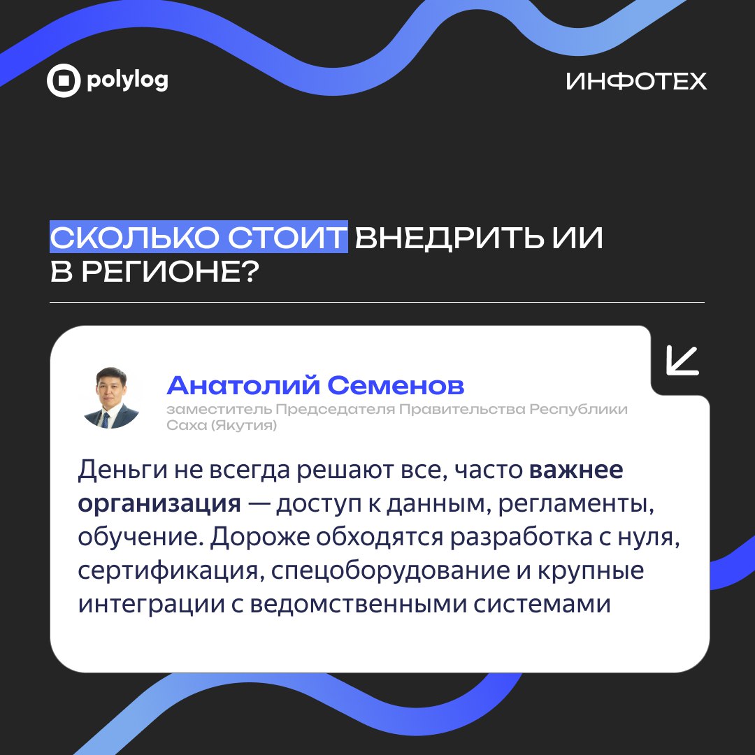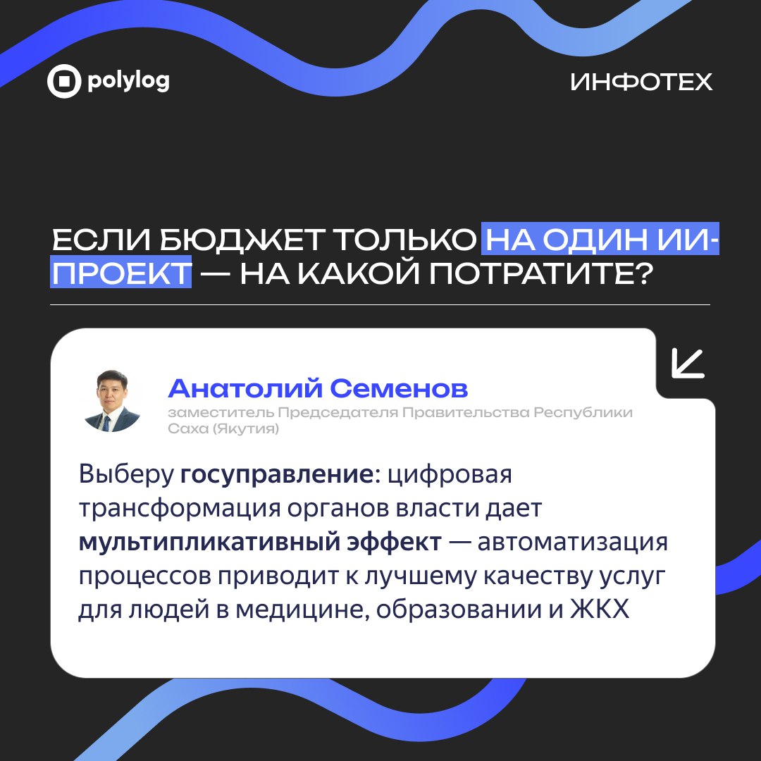 В преддверии форума «ИНФОТЕХ-2025» заместитель Председателя Правительства Республики Саха (Якутия) Анатолий Семенов ответил на вопросы про внедрение ИИ в регионе. Самое интересное — в карточках