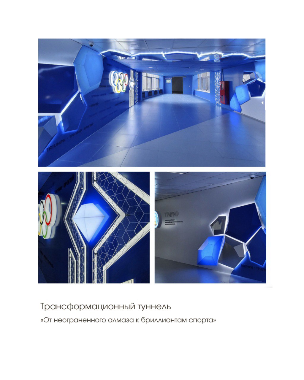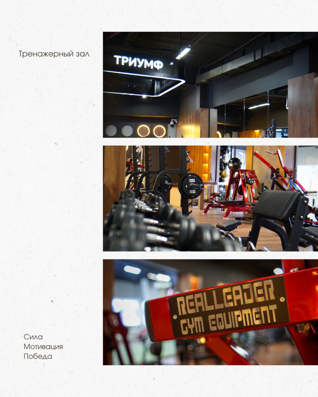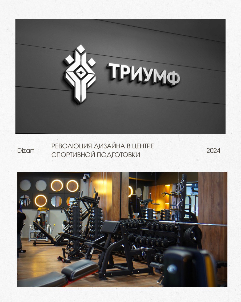 Теперь «Триумф» — не просто место для тренировок, а пространство, мотивирующее к победам. DIZART обновила логотип, стиль, интерьер тренажёрного зала, столовой, гостиницы, зала борьбы и раздевалок, создала концепцию переходов — всё ради вдохновения спортсменов.