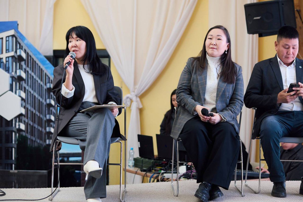 В рамках деловой программы в сессии «Локальные активности как драйвер развития территорий», экспертом выступила руководитель некоммерческого фонда по развитию поселка Кысыл-Сыр «КЫН» Мария Афанасьева и руководитель отдела по связям с общественностью и корпоративным коммуникациям ЯТЭК Виктория Сунтхавонг.