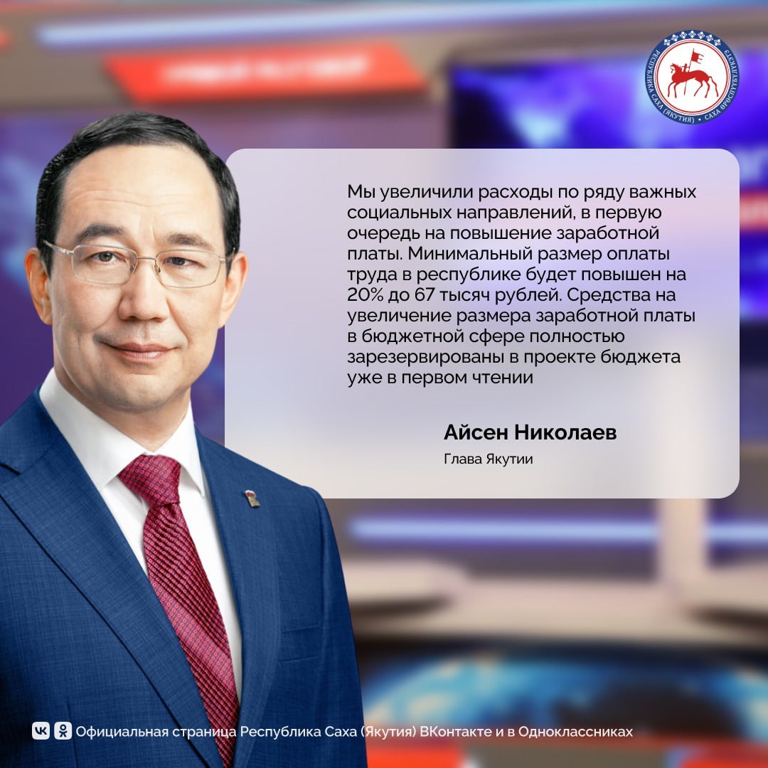 Государственный бюджет Якутии 2026 года сохранит свою социальную направленность, что позволит полностью выполнить обязательства государства перед жителями республики. Об этом в прямом эфире передачи «Прямой разговор» ГТРК «Саха» на канале «Россия 24» заявил Глава Якутии Айсен Николаев.