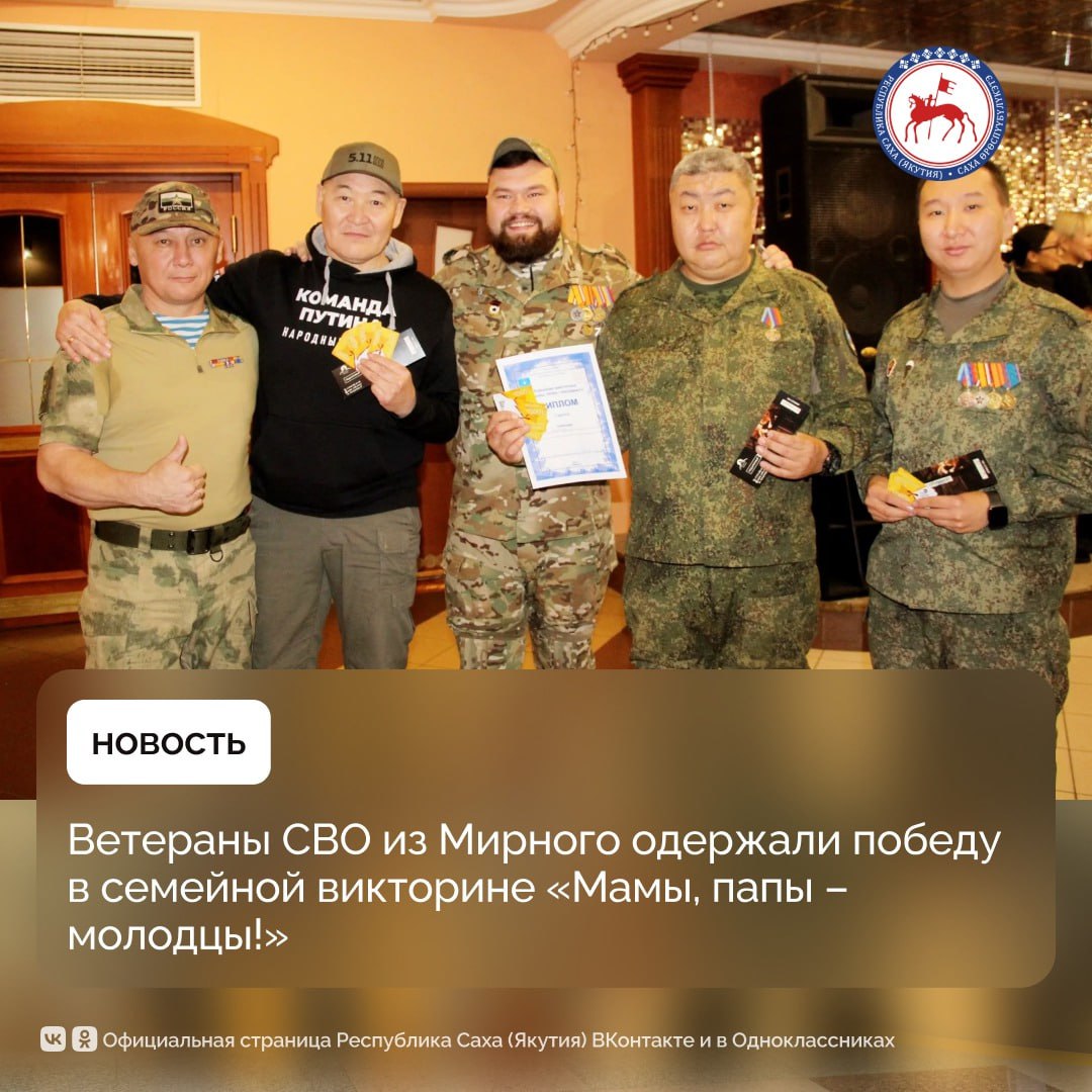 Ветераны специальной военной операции из города Мирного одержали победу в семейной викторине «Мамы, папы – молодцы!». Интеллектуальное состязание было приурочено ко Дню отца в России и Дню матери в Республике Саха (Якутия).