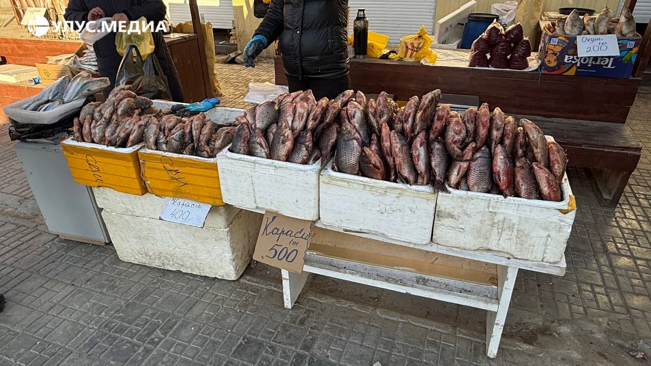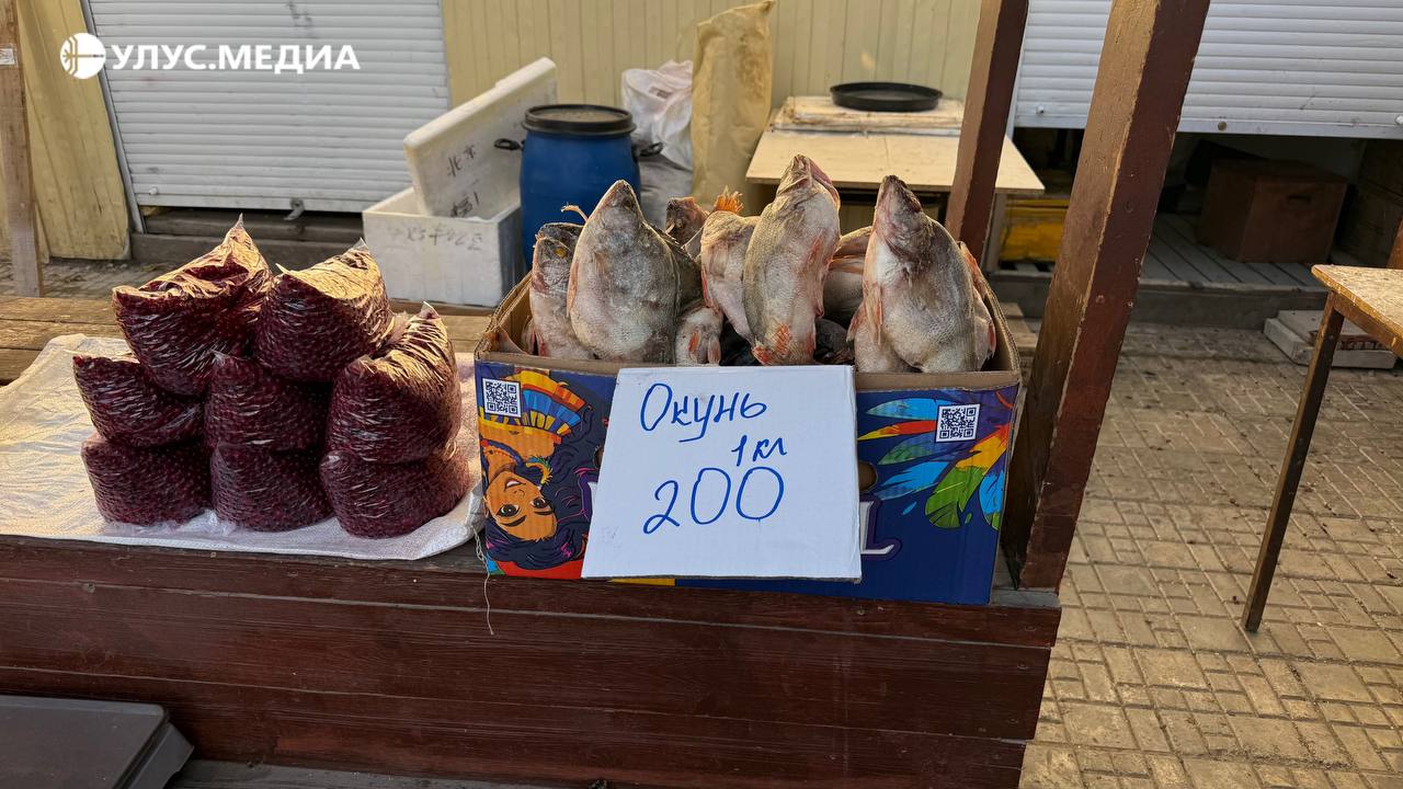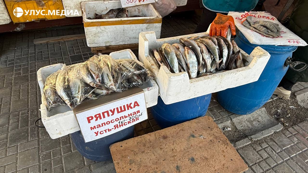 На прилавках широкий выбор северной рыбы. Чир стоит от 800 до 1000 рублей за килограмм, щука — 300 рублей, окунь — 200 рублей. Караси усть-алданские продаются по 400 рублей, кобяйские — по 500 рублей, ряпушка — от 500 до 700рублей за килограмм.