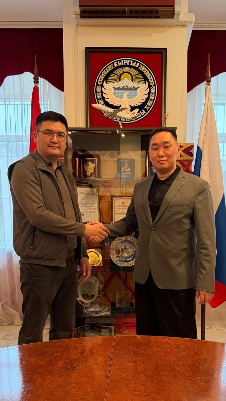 В московском посольстве Кыргызстана состоялась рабочая встреча генерального директора «Экстра Синема» Петра Чиряева и руководителя компании «Атлант Синема» Акбарбека Баракова.