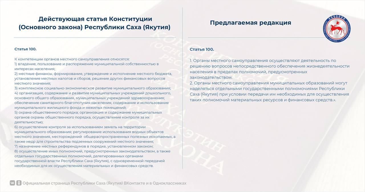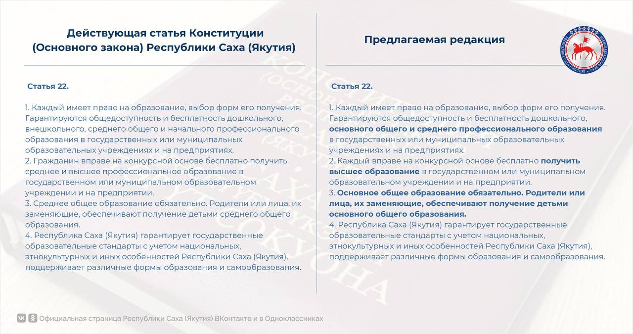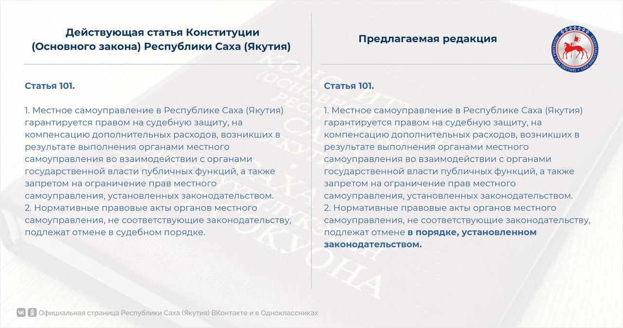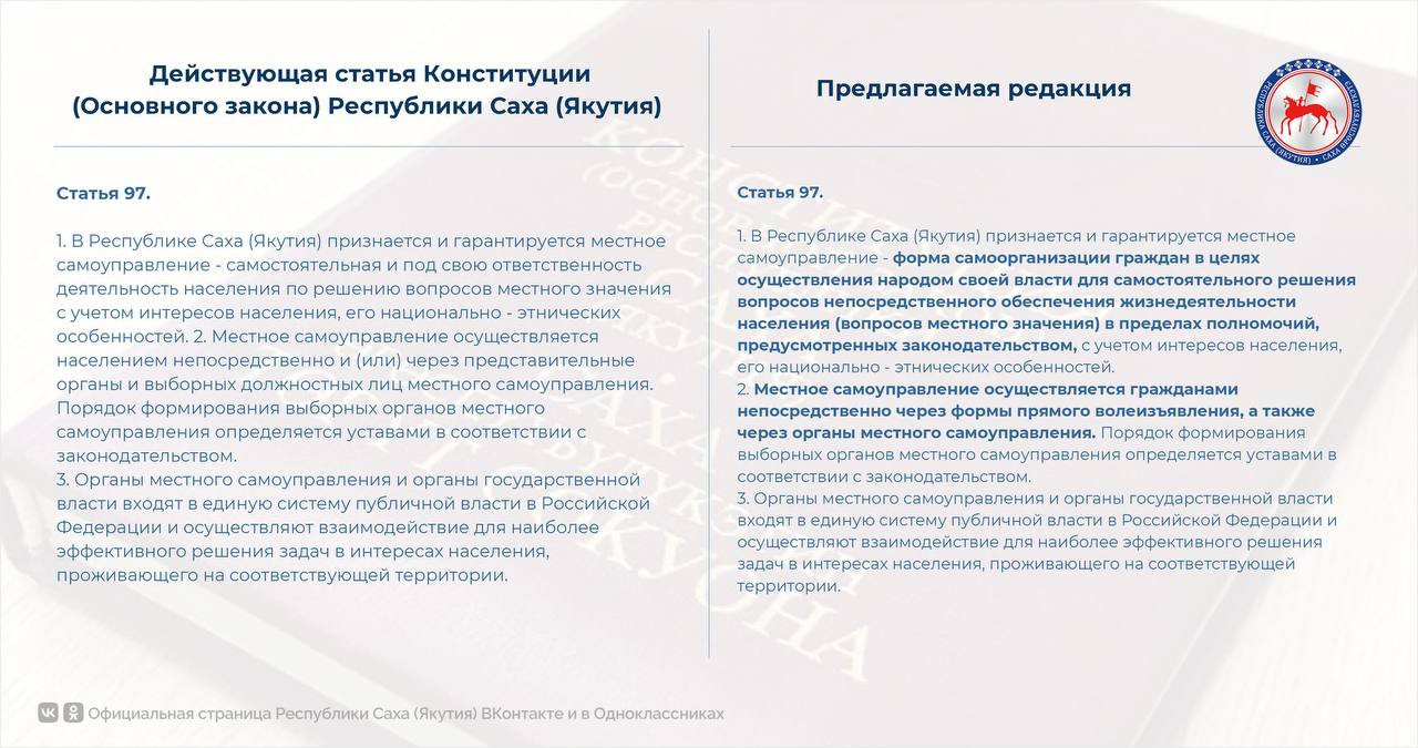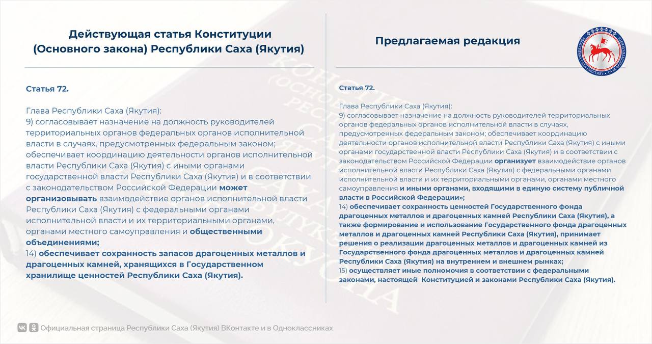 На XIV (очередном) пленарном заседании Государственного Собрания (Ил Тумэн) 22 октября в окончательном чтении принят проект конституционного закона «О внесении изменений и дополнений в Конституцию (Основной Закон) Республики Саха (Якутия)»