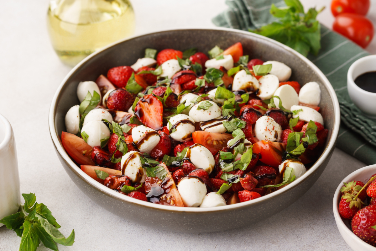 Салат с клубникой и помидорами – это не просто блюдо, а настоящая симфония вкусов, где сладость сочных ягод гармонично сочетается с освежающей легкостью помидоров. Этот яркий и красочный салат станет прекрасным дополнением к любому теплому летнему обеду или ужину, радуя глаз и пробуждая аппетит, пишет Дзен-канал "Еда от ШефМаркет".