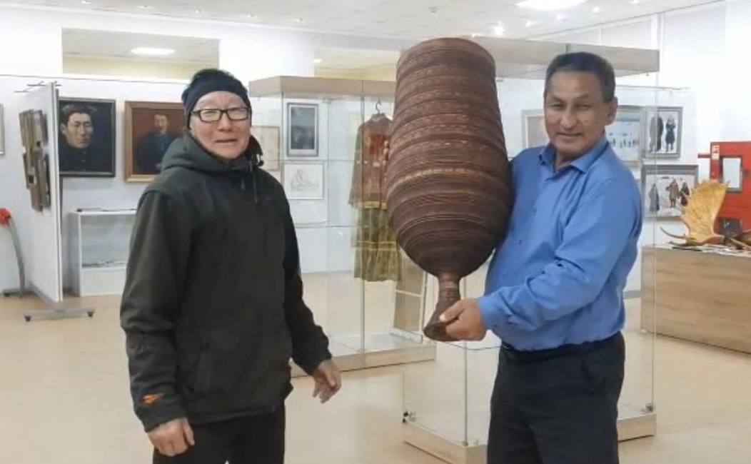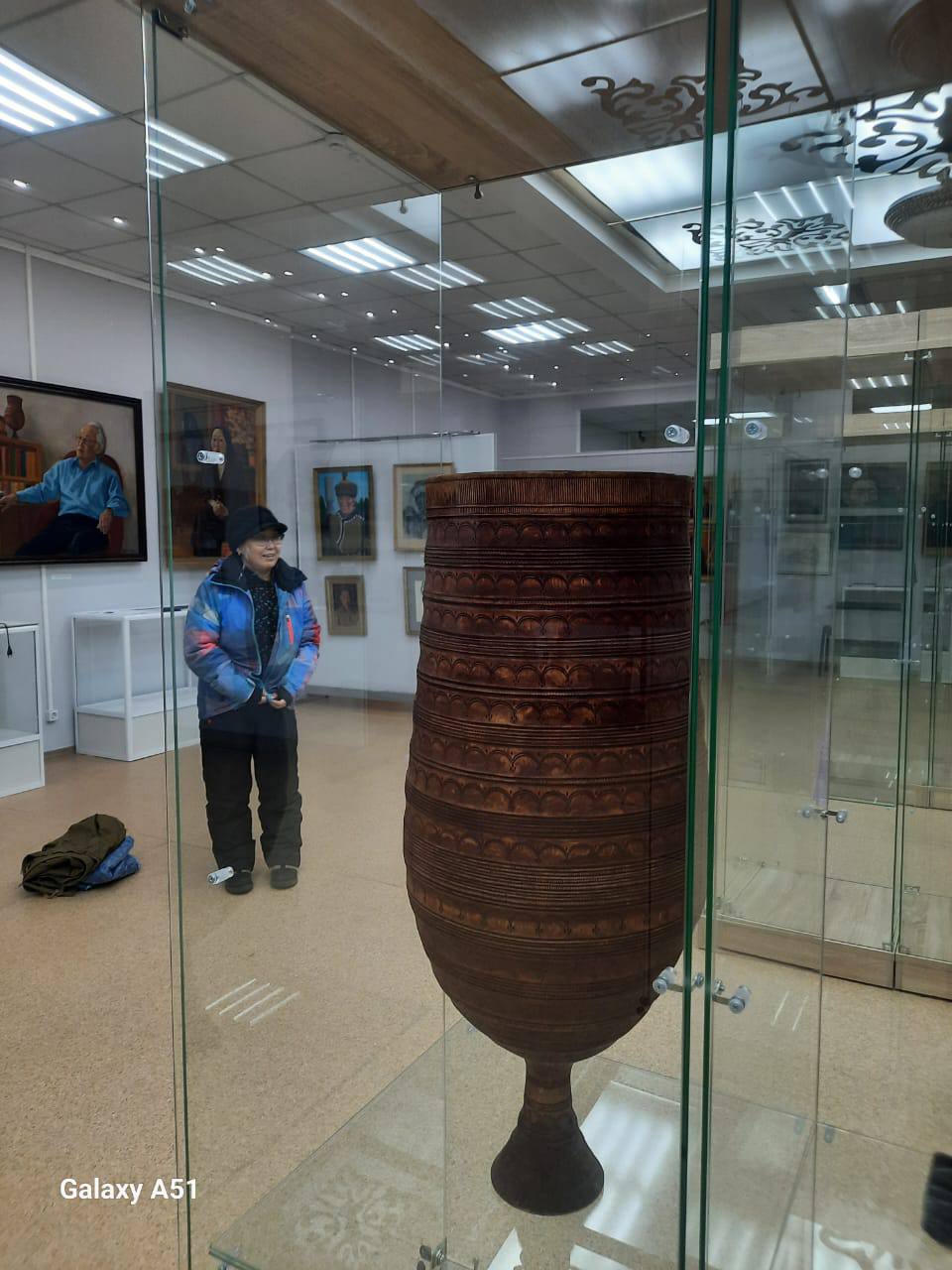Напомню, что этот чороон изготовил народный мастер Андрей Лукич Малышев, который лично прибыл сюда, чтобы принять участие в выставке в рамках проекта «Все дороги ведут в Мытаах».