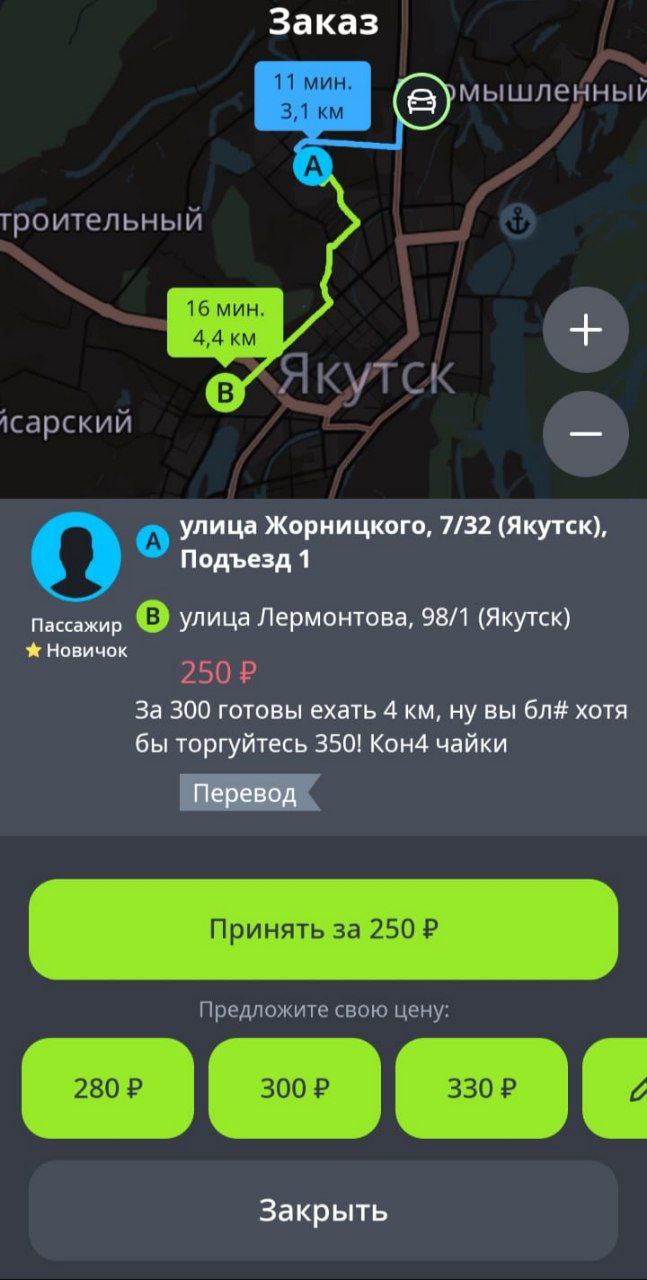 — Все, мужики!!! Прекращаем зарабатывать только на бензин!!! По центру ниже 300 рублей не берем!!! — написал он в описании.