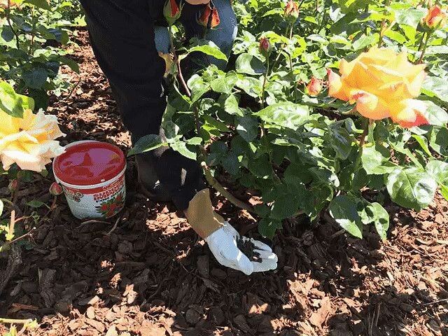- Удобрения следует рассыпать по кругу на расстоянии 10-15 см от корневой шейки и легонько рыхлить. Необходимо работать аккуратно, чтобы не повредить корни, а удобрения постепенно растворятся в почве, питая растения.